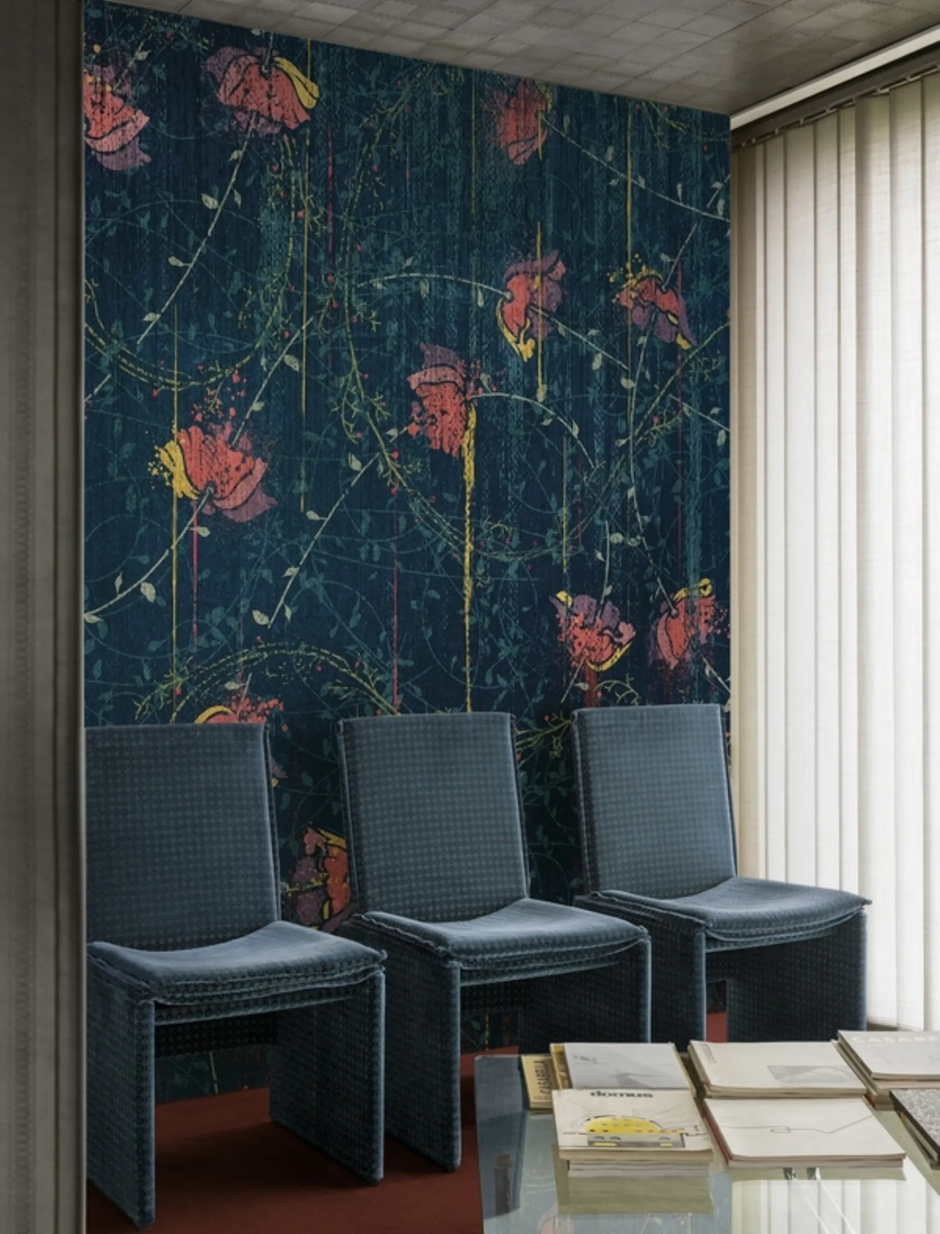 Definisci il tuo progetto d'arredo con la Carta da parati vinilica: se desideri una soluzione moderna, Poppies Mesh fa per te.