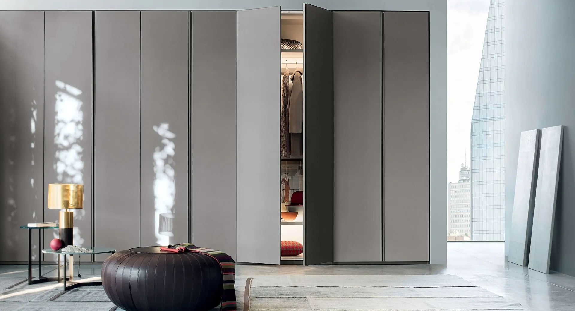 Se cerchi armadi su misura con ante battenti, clicca e scopri l'armadio Emery Battente di Lema in vetro.