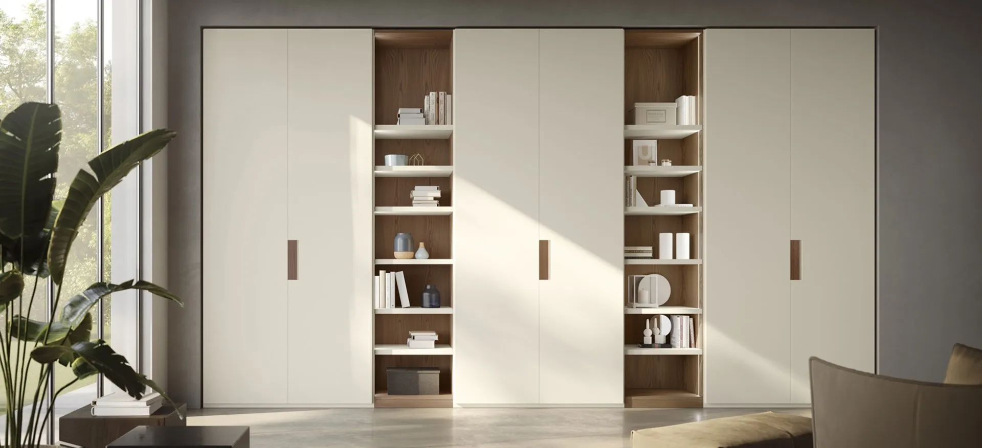 Cerchi un guardaroba in laccato opaco? Clicca e scopri armadi a muro con ante battenti di Fimar.