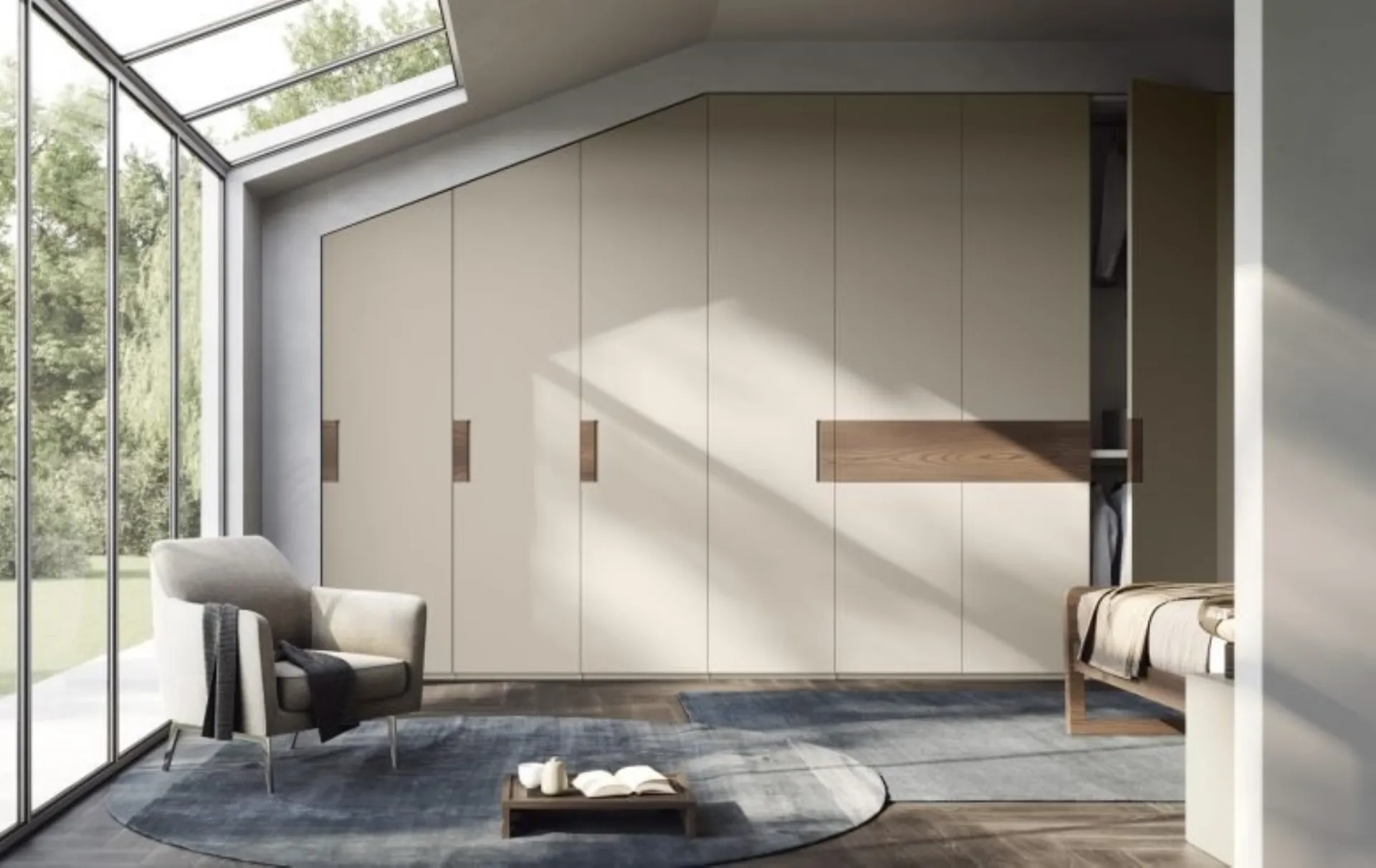 Se vuoi una camera da letto ammobiliata al meglio, scegli l'armadio Segno per mansarde con ante battenti di Fimar!