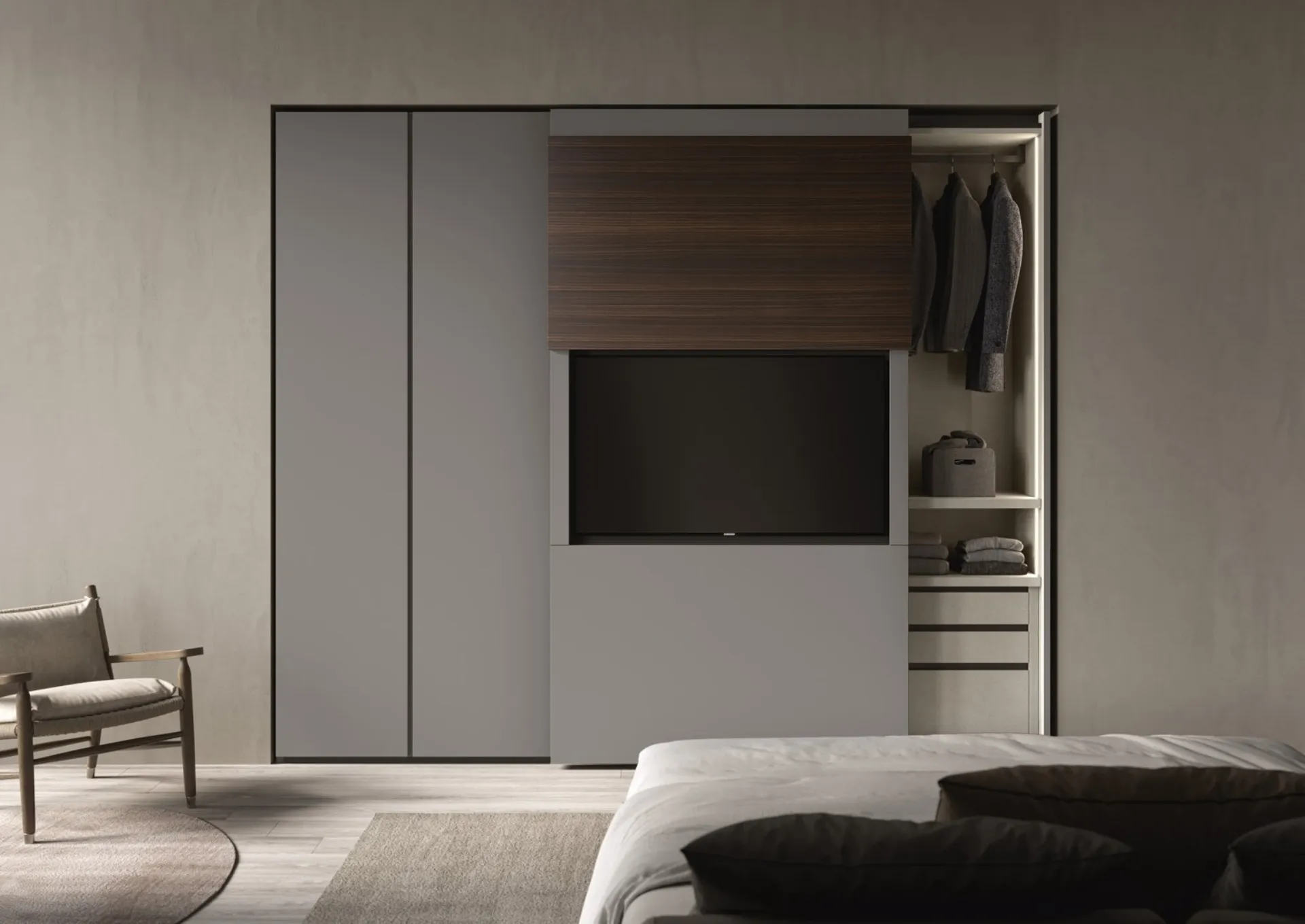 Contattaci e ottieni informazioni su una ricca gamma di Arredamento Casa per allestire la zona notte utilizzando contenitori in laccato opaco di elevata qualità. Per ultimare il concept d'arredo in una camera da letto pratica e sofisticata, abbiamo selezionato per te le più esclusive e accattivanti soluzioni Fimar, diverse per buon gusto, grandezza, finitura e elementi accessori. Armadio porta TV con anta scorrevole Sipario di Fimar: compila il form per info e preventivi e progetta la tua casa come l'avevi sognata. Nella nostra linea di Armadi a muro design con ante scorrevoli potrai trovare anche il modello mostrato in foto, perfetto per chi cerca praticità e design. Questa soluzione, tra i vari modelli a muro con ante scorrevoli di Fimar, è simbolo di resistenza, eleganza e raffinatezza duraturi negli anni.