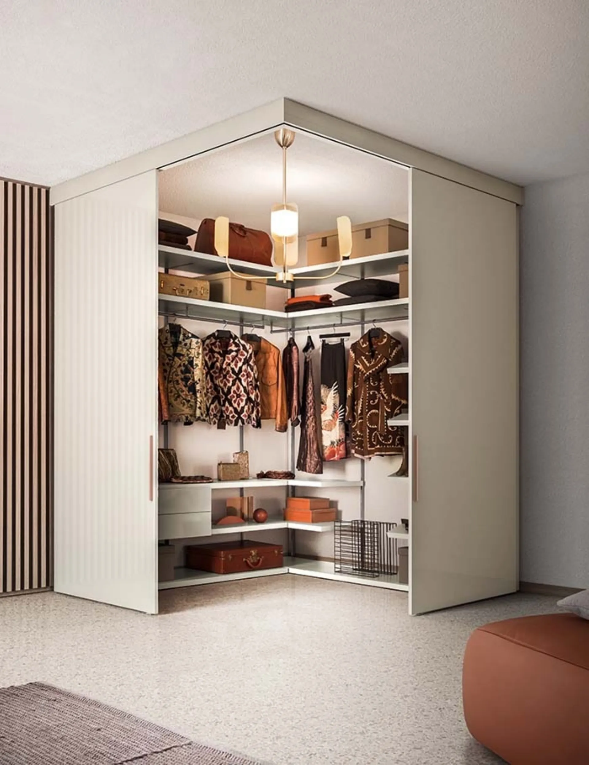 Se cerchi armadi cabine armadio con ante scorrevoli, clicca e scopri l'armadio Vista Cabina Armadio 02 di Pianca in laccato opaco.