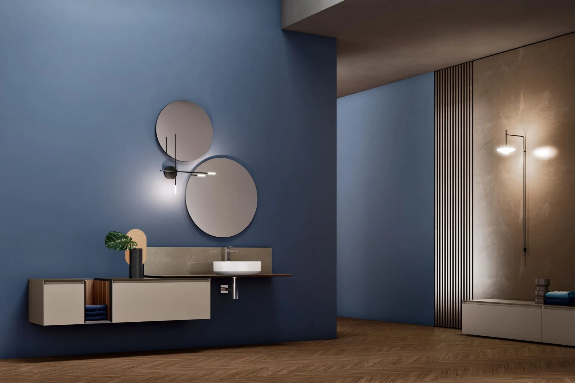 Mobili bagno sospesi in laccato opaco del marchio Arcom: clicca e scopri l'arredo bagno design Dafne 03 per il tuo bagno.