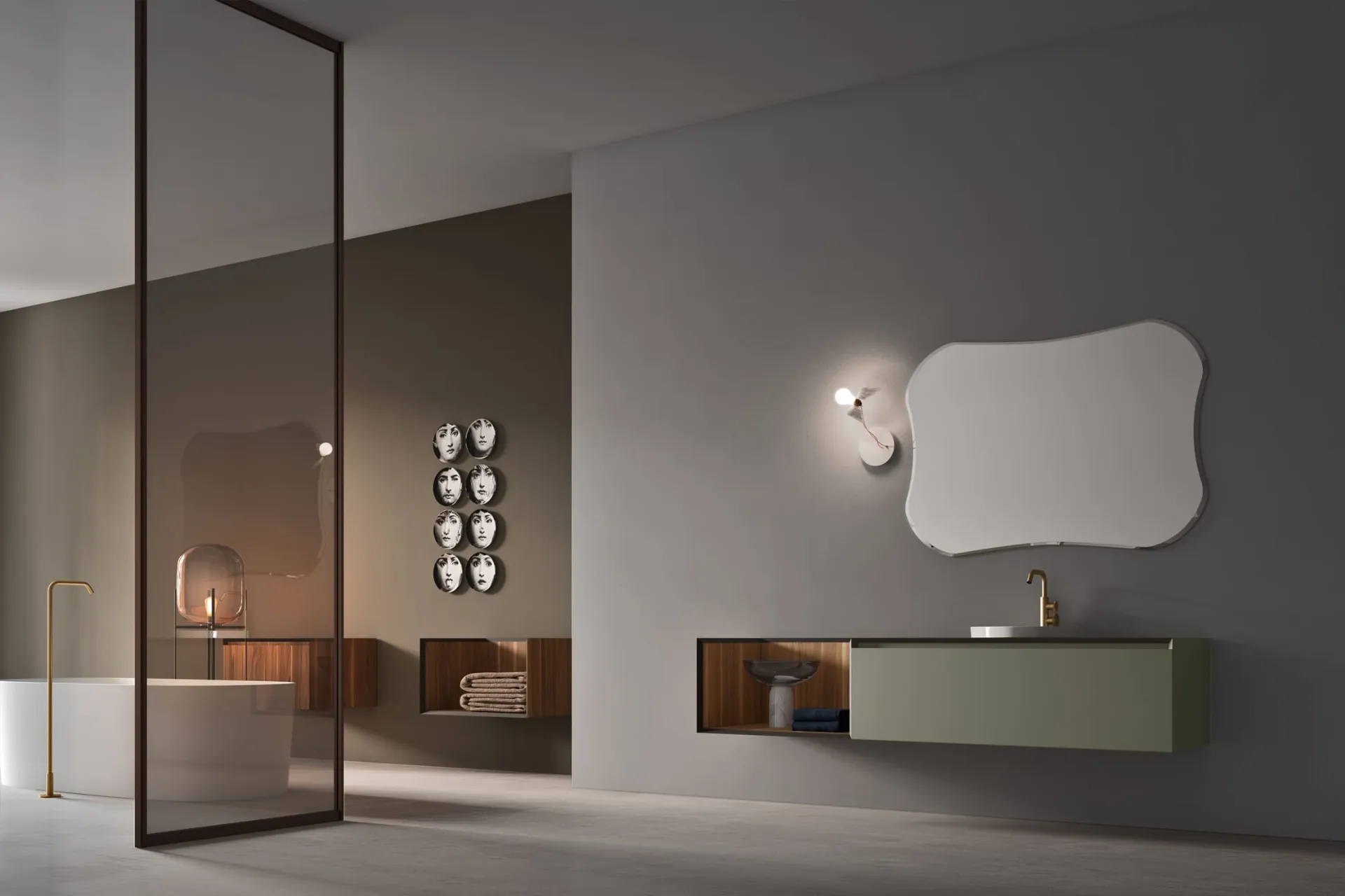 Scopri di più sull'arredo bagno design: mobili bagno sospesi in laccato opaco come il modello Dafne 04 di Arcom ti attendono.