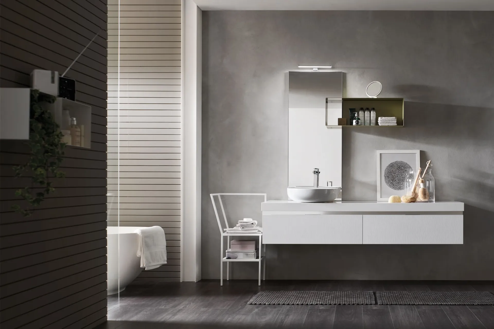 Ottieni informazioni sull'arredo bagno moderno: mobili bagno sospesi in melaminico come il modello E-Gò 61 di Arcom ti aspettano.
