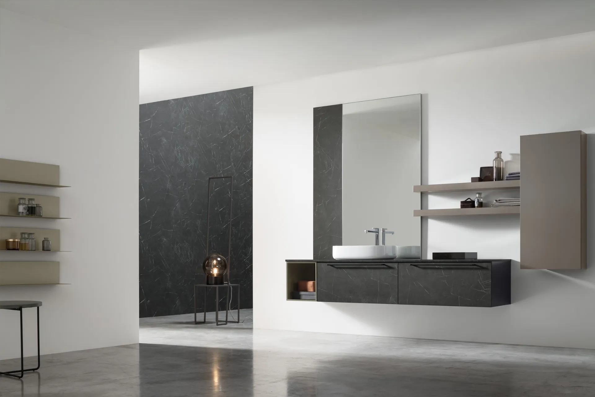 Mobili bagno sospesi Pollock 81 di Arcom: scopri l'Arredo Bagno in melaminico moderno e arreda la stanza del benessere.