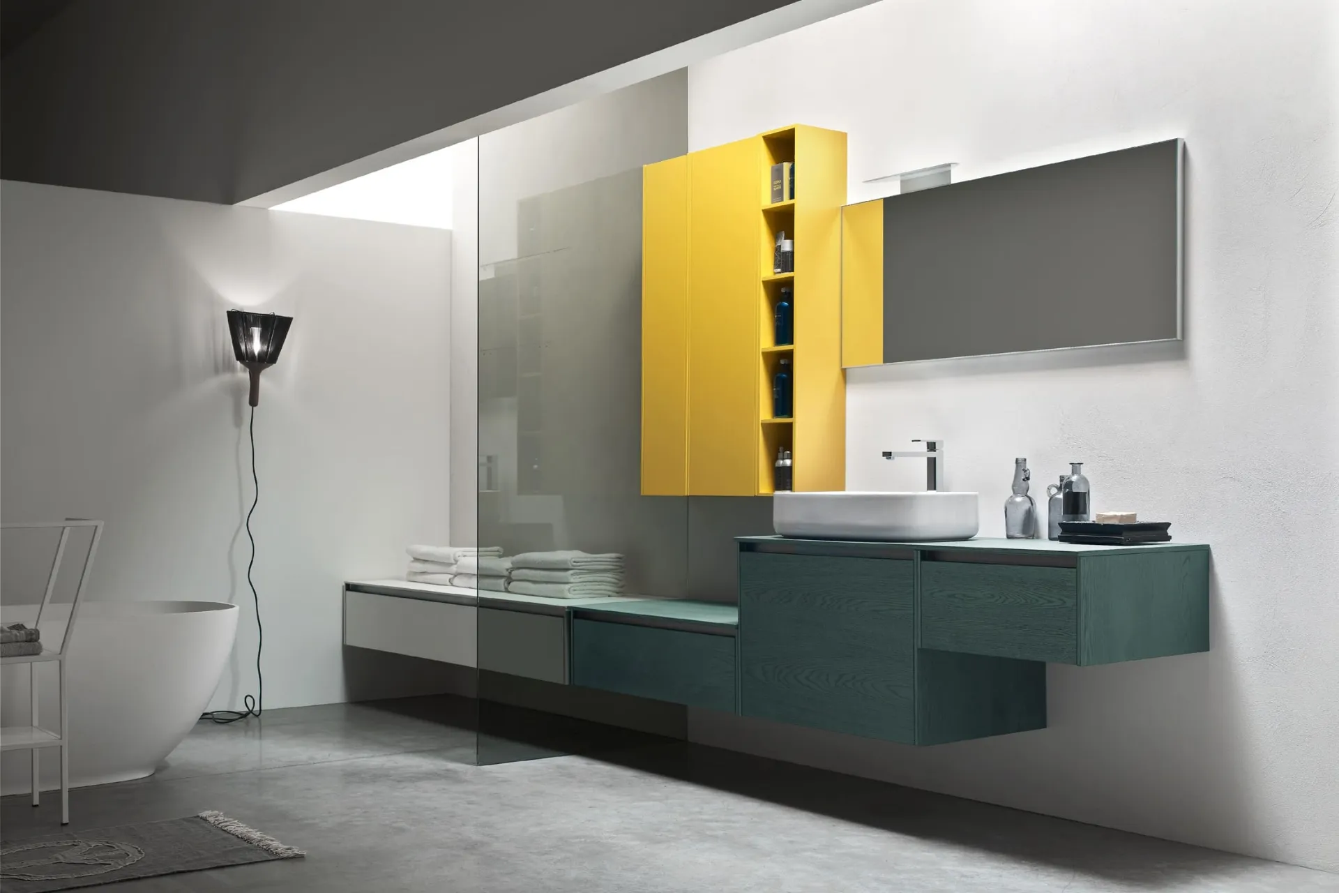 Mobili bagno sospesi Escape 33 di Arcom: scopri l'Arredo Bagno in legno moderno e arreda il tuo bagno.