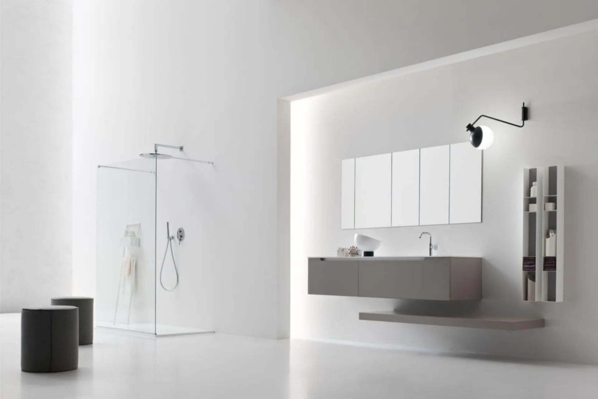 Mobili bagno sospesi Gold 02 di Arcom: scopri l'Arredo Bagno in laccato opaco moderno e arreda la stanza del benessere.