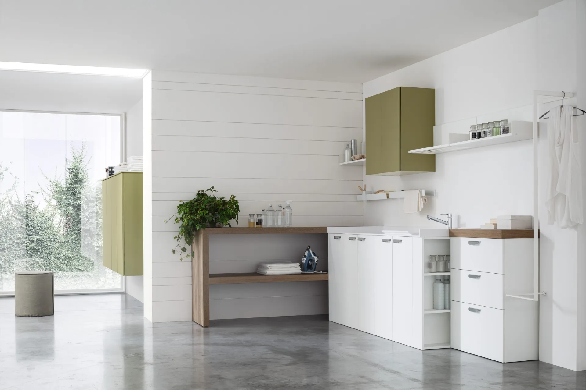Arreda il bagno di casa moderno alla perfezione con I-WASH 11, mobili bagno per lavanderia e accessori in laccato opaco di Arcom.
