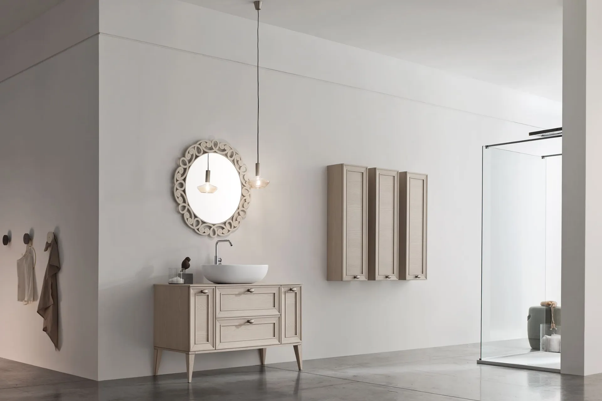 Arreda il bagno di casa classico alla perfezione con Opera 07, mobili bagno a terra e accessori in legno di Arcom.