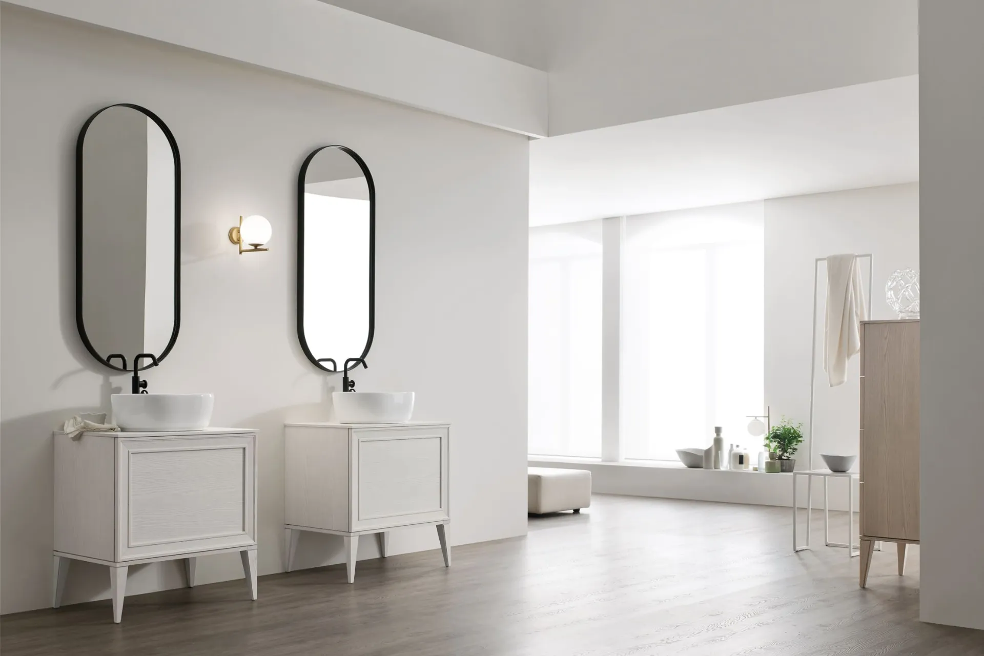 Mobili bagno a terra Opera 08 di Arcom: scopri l'Arredo Bagno in legno classico e arreda il tuo bagno.