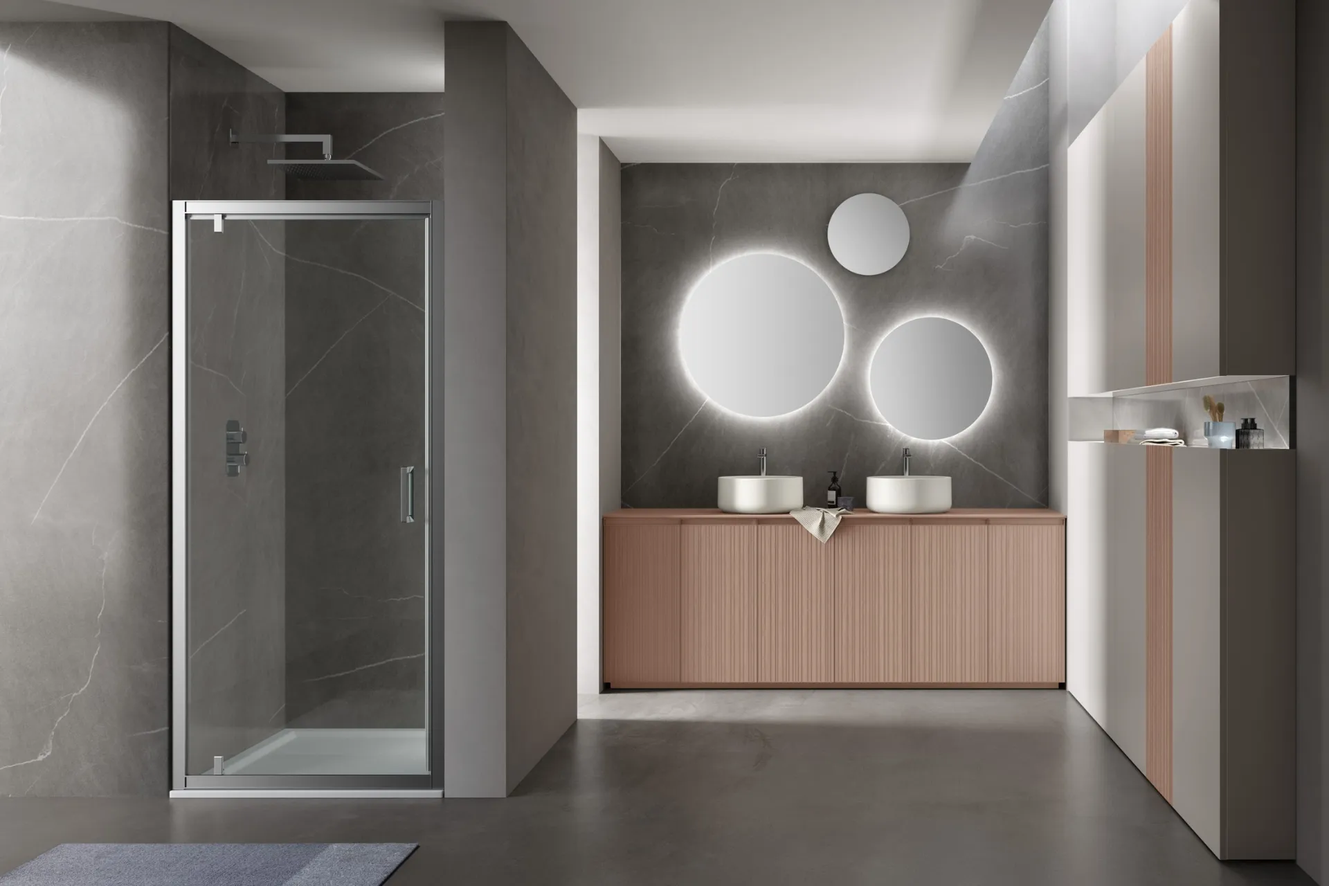 Mobili bagno a terra in laccato opaco del brand Arcom: clicca e scopri l'arredo bagno moderno Rail 05 per il bagno di casa.