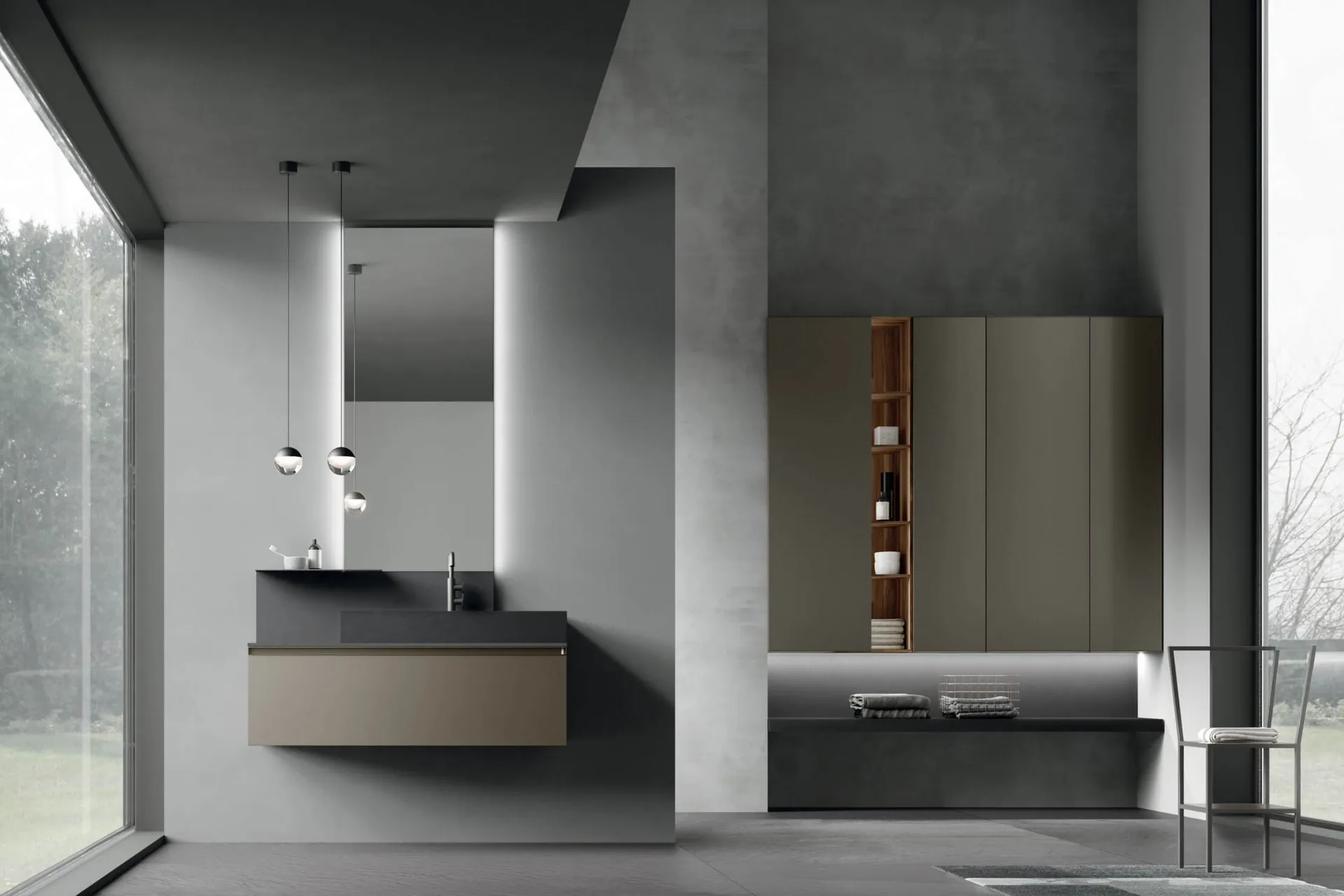 Arreda il tuo bagno moderno ottimamente con Rail Gola 04, mobili bagno sospesi e accessori in laccato opaco di Arcom.