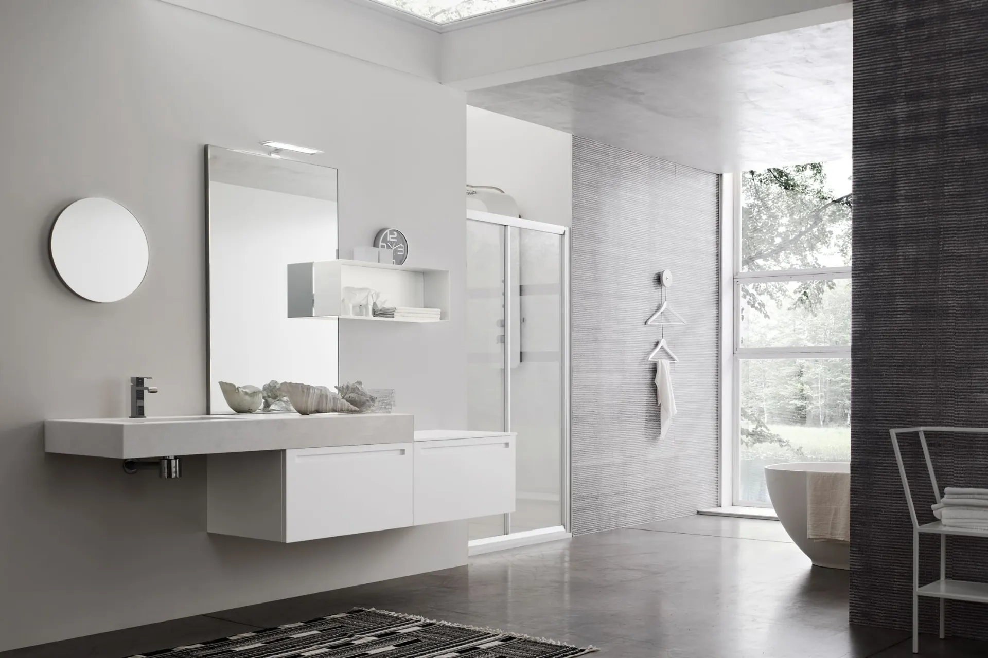 Mobili bagno sospesi Rush 28 di Arcom: scopri l'Arredo Bagno in laccato opaco moderno e arreda il tuo bagno.