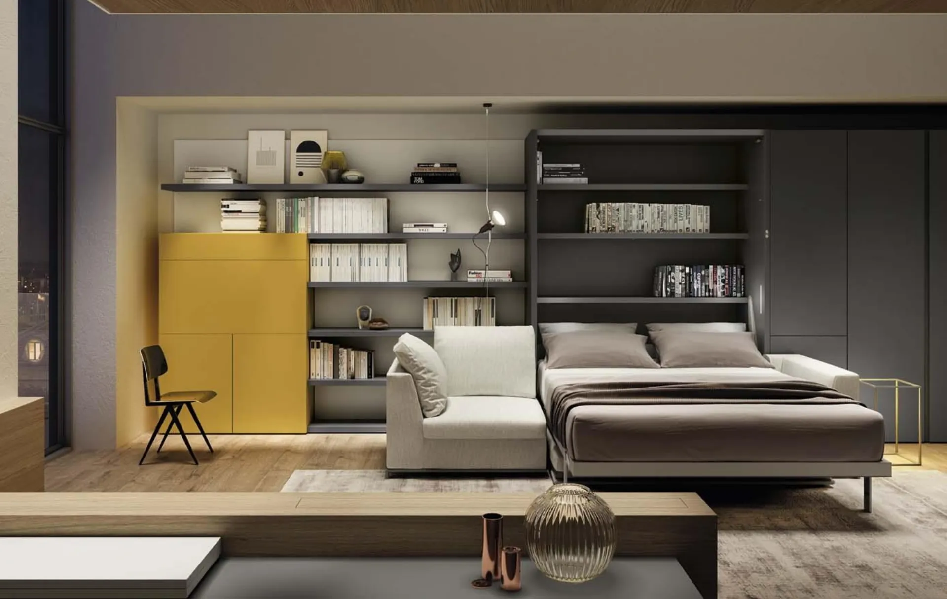 Letto a scomparsa Living 24 di Clei: scopri le più esclusive soluzioni salvaspazio trasformabili in laccato opaco.