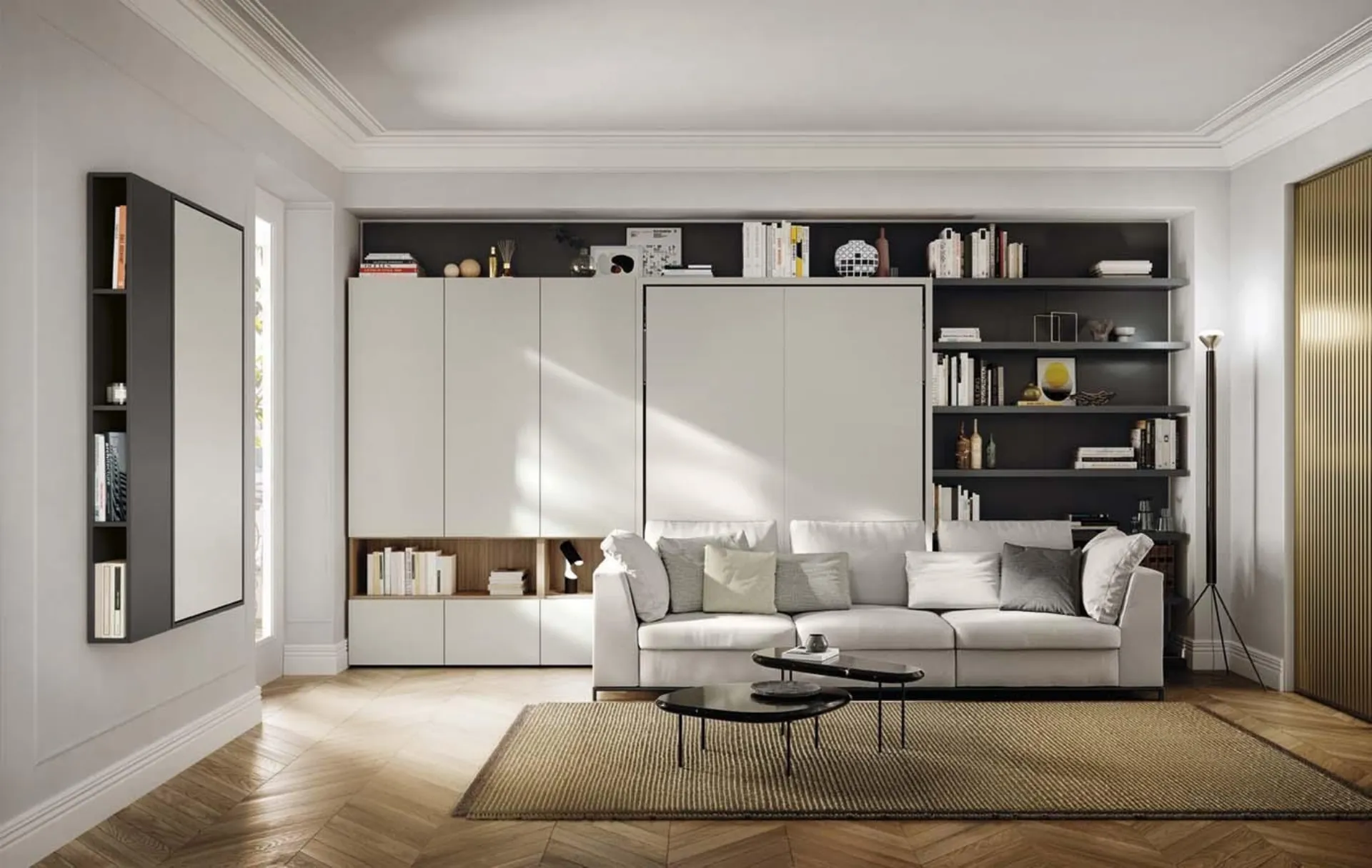 Letto a scomparsa Living 25 di Clei: scopri le più esclusive soluzioni estremamente compatte trasformabili in laccato opaco.
