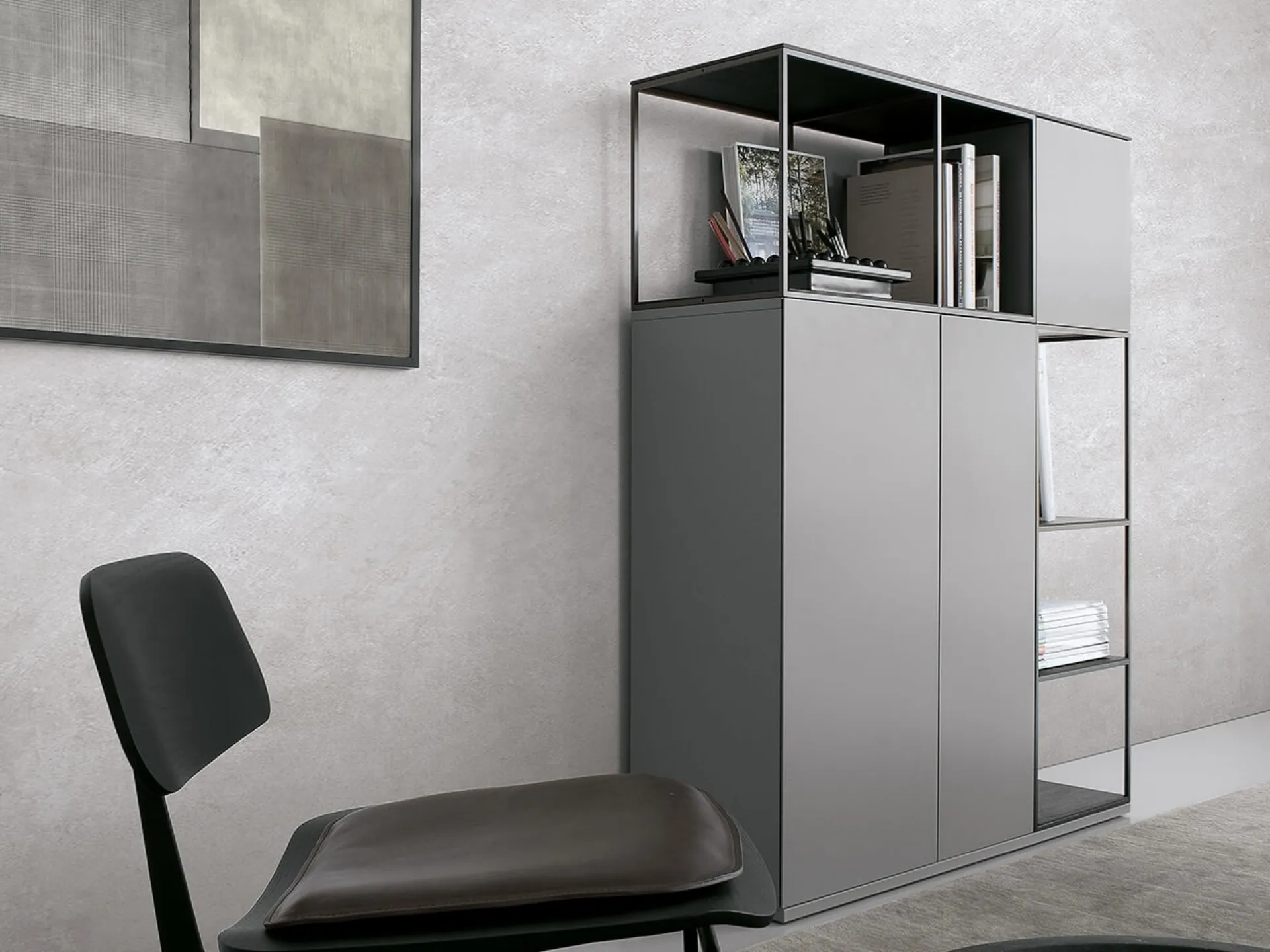 Clicca e scopri le Librerie a muro moderne! Il modello Atelier configurazione 04 Extendo saprà completare un living operativo e pratico.