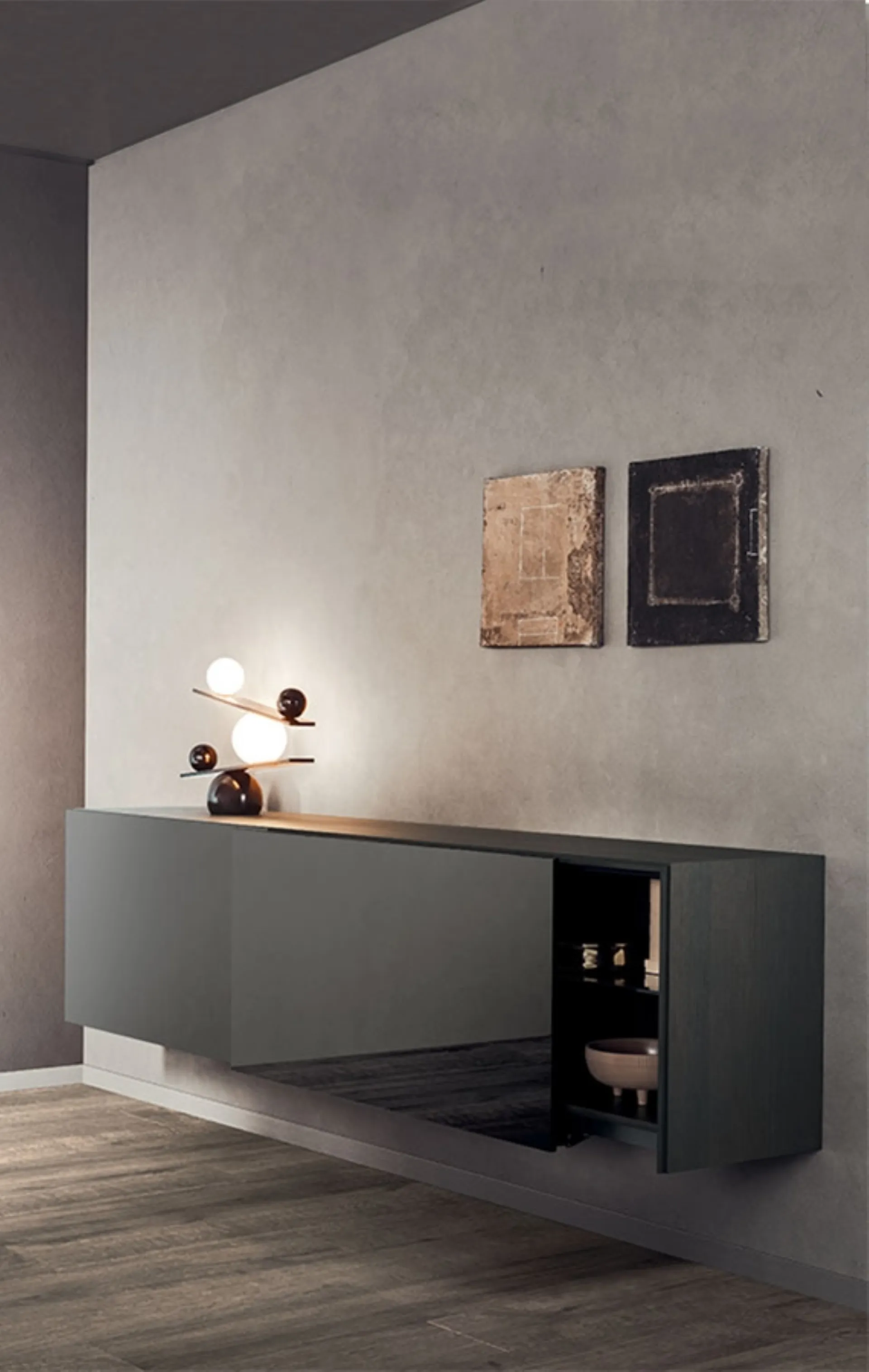 Arreda un soggiorno pratico e dinamico con questa madia People Nera Lucida Sospesa di Pianca: scopri le più esclusive Madie in laccato lucido.