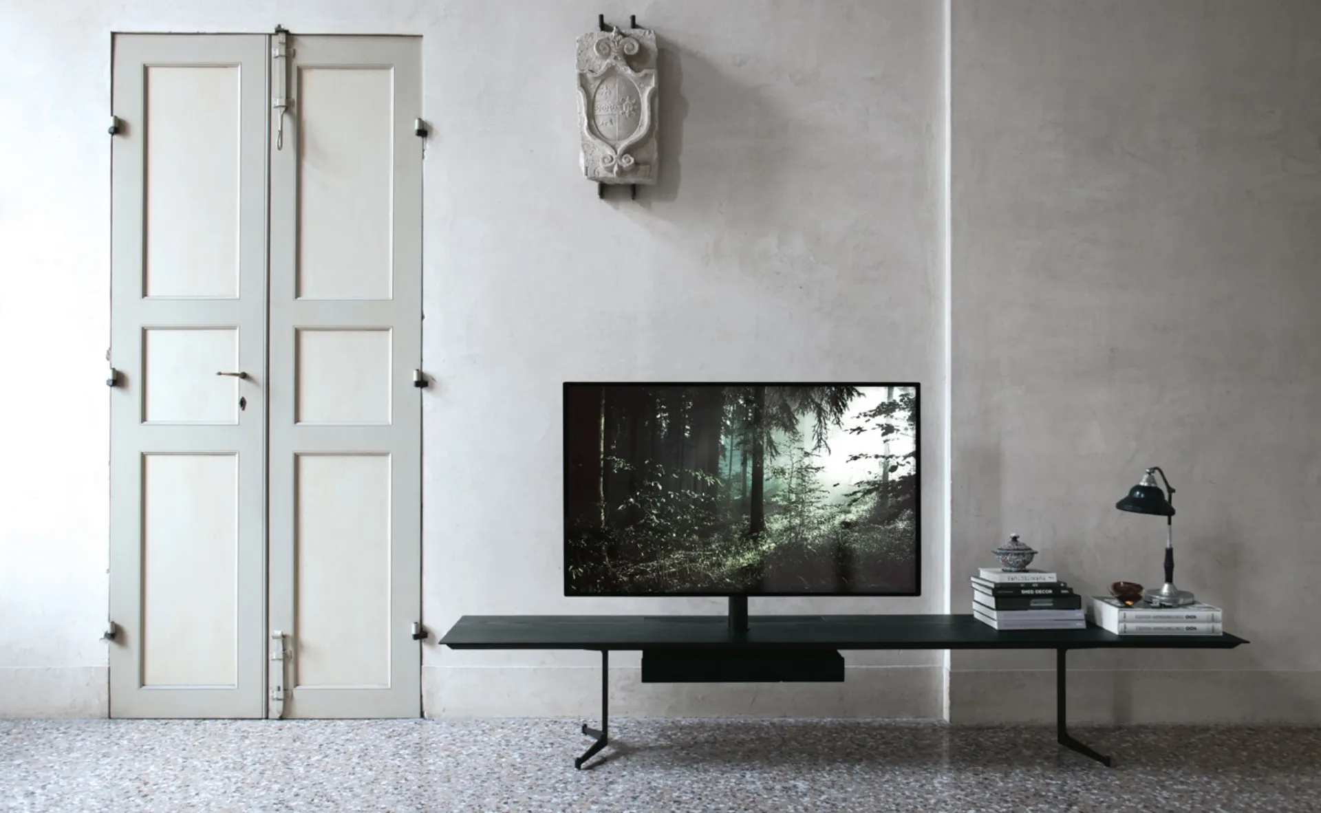 Cerchi un mobile per la televisione? Ti offriamo il modello Connect configurazione 01 di Extendo in HPL, ideale per spazi moderni.