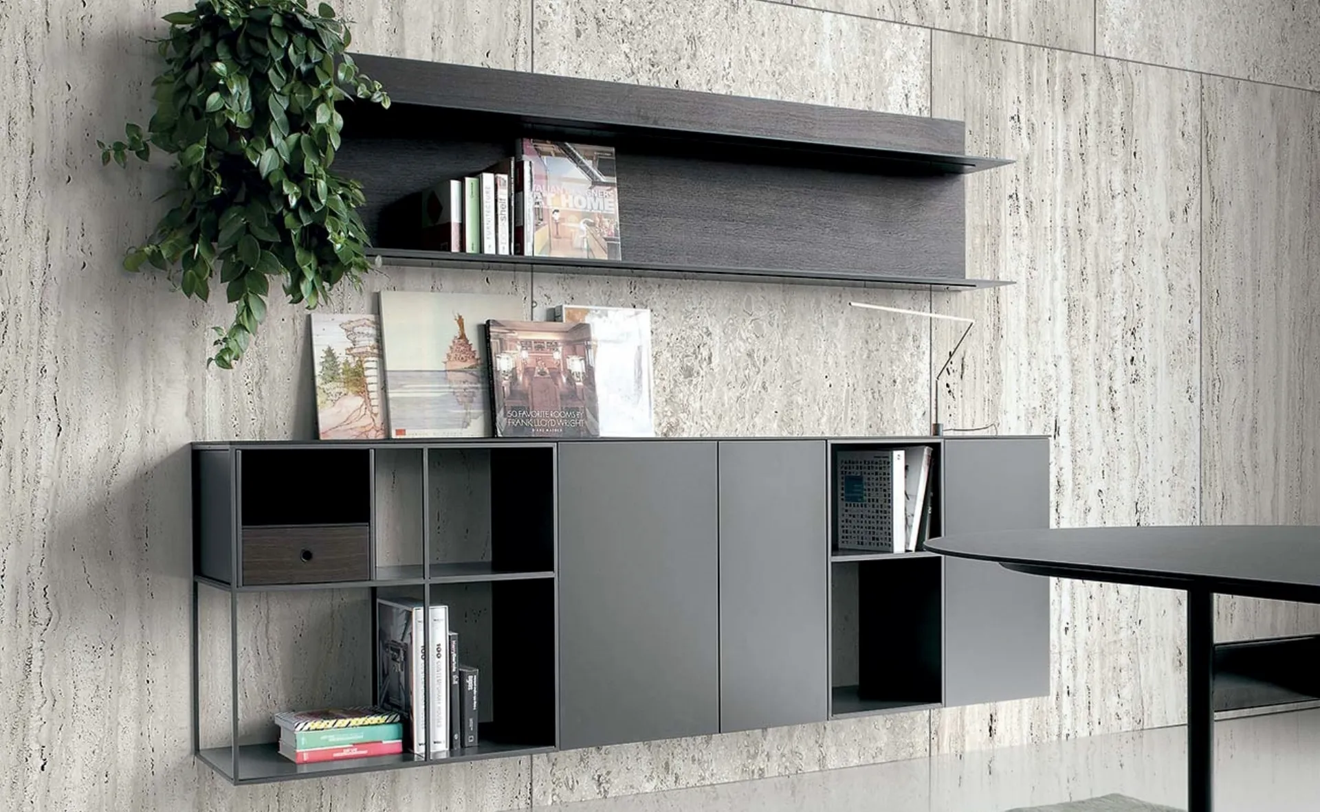 Vuoi progettare un soggiorno pratico e dinamico? Ti offriamo la parete attrezzata Atelier 05 Extendo dalle linee decise moderne.