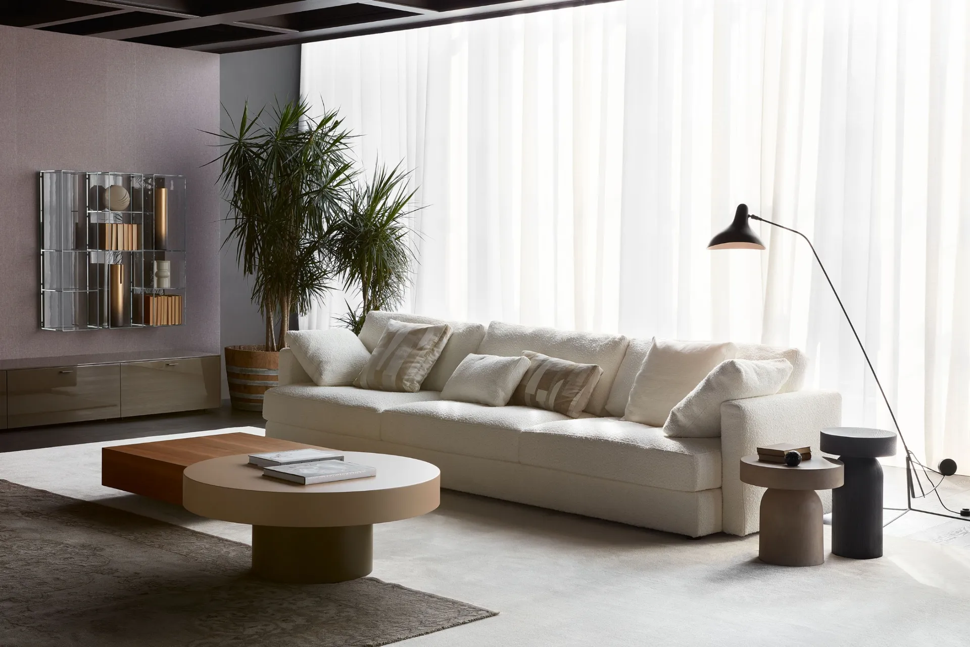Il salotto è il centro dell'ambiente giorno di ogni casa, gli imbottiti sono moduli d’arredo attorno ai quali trascorrere momenti di riposo e di socialità. I Salotti rappresentano un elemento del soggiorno veramente essenziale, da organizzare con cura posizionando divani, poltrone e pouf. Lema, leader nella realizzazione di divani, ha ideato per il modello nell'immagine un ricercato ed elegante rivestimento in tessuto. Scopri un'ampia gamma di imbottiti lineari dei migliori brand e ottimizza la zona giorno che hai sempre sognato. Divano lineare Glee di Lema: lasciati stuzzicare dalle nostre proposte di imbottiti moderni che possano garantire comodità, funzionalità e stile nel tuo soggiorno.