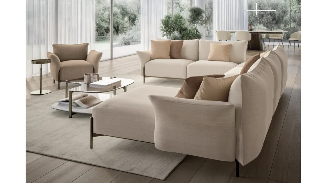 Se vuoi divani per salotti moderni, clicca e leggi di più sul modello Victor in tessuto del brand Bontempi.