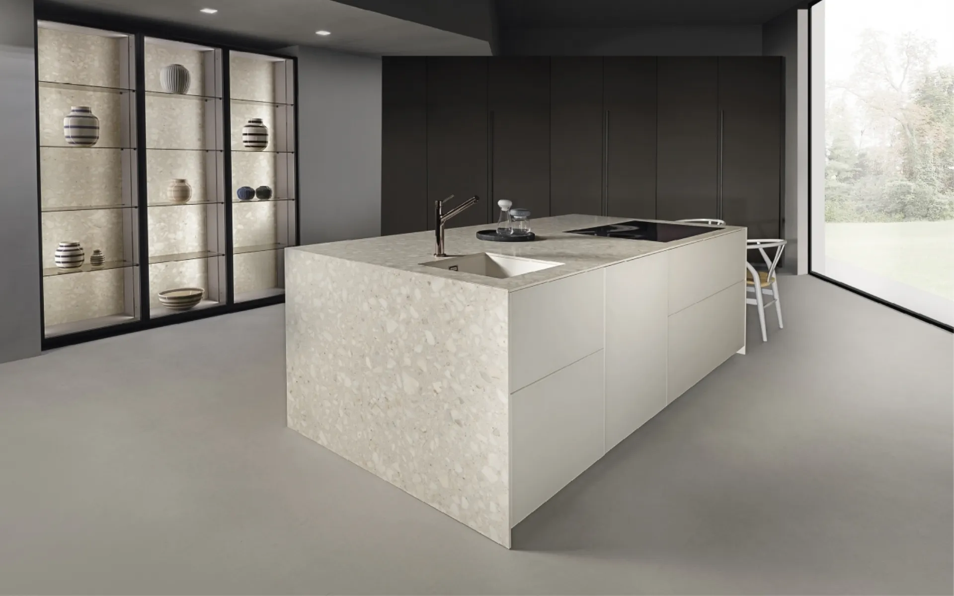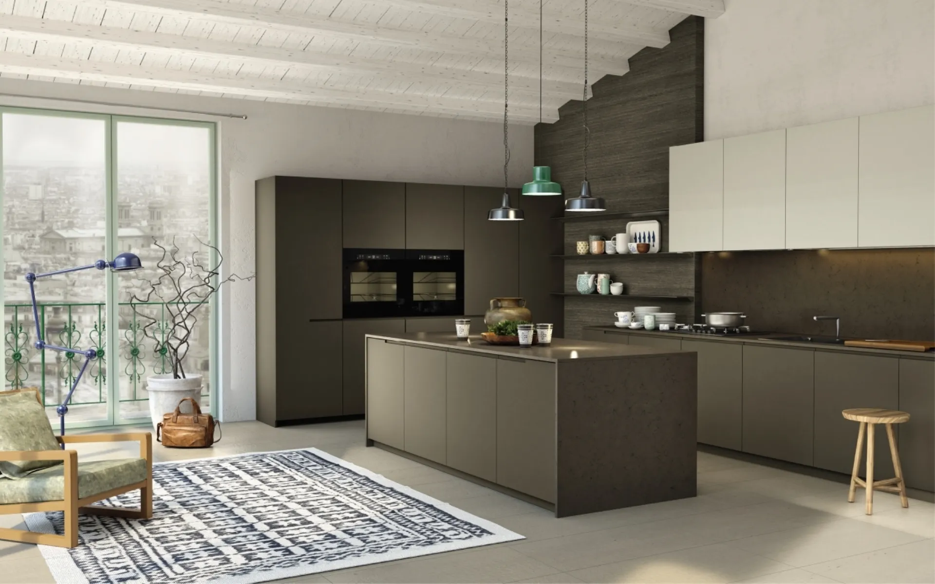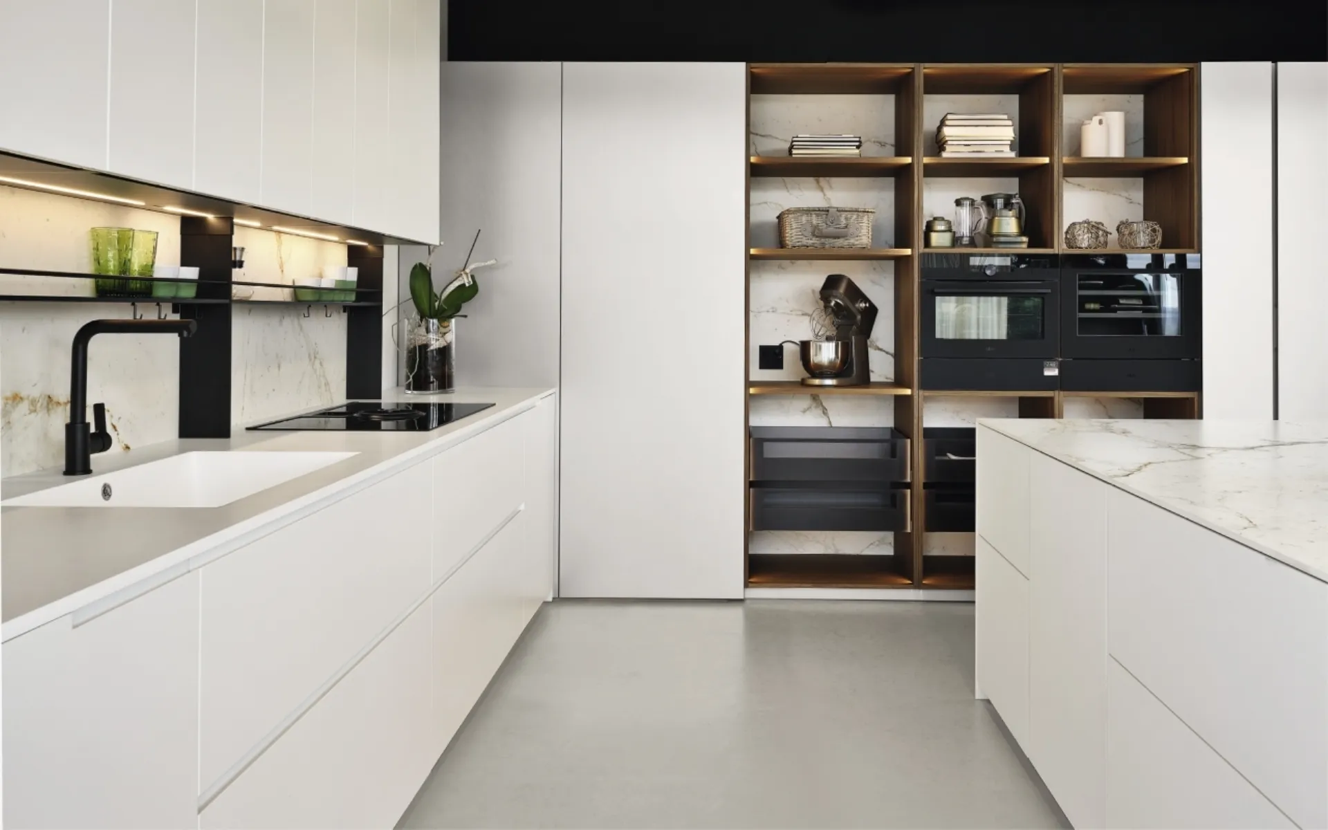 Scopri di più sul modello Arena laccato con isola di Maistri: arreda la cucina con la soluzione in laccato opaco che fa per te.