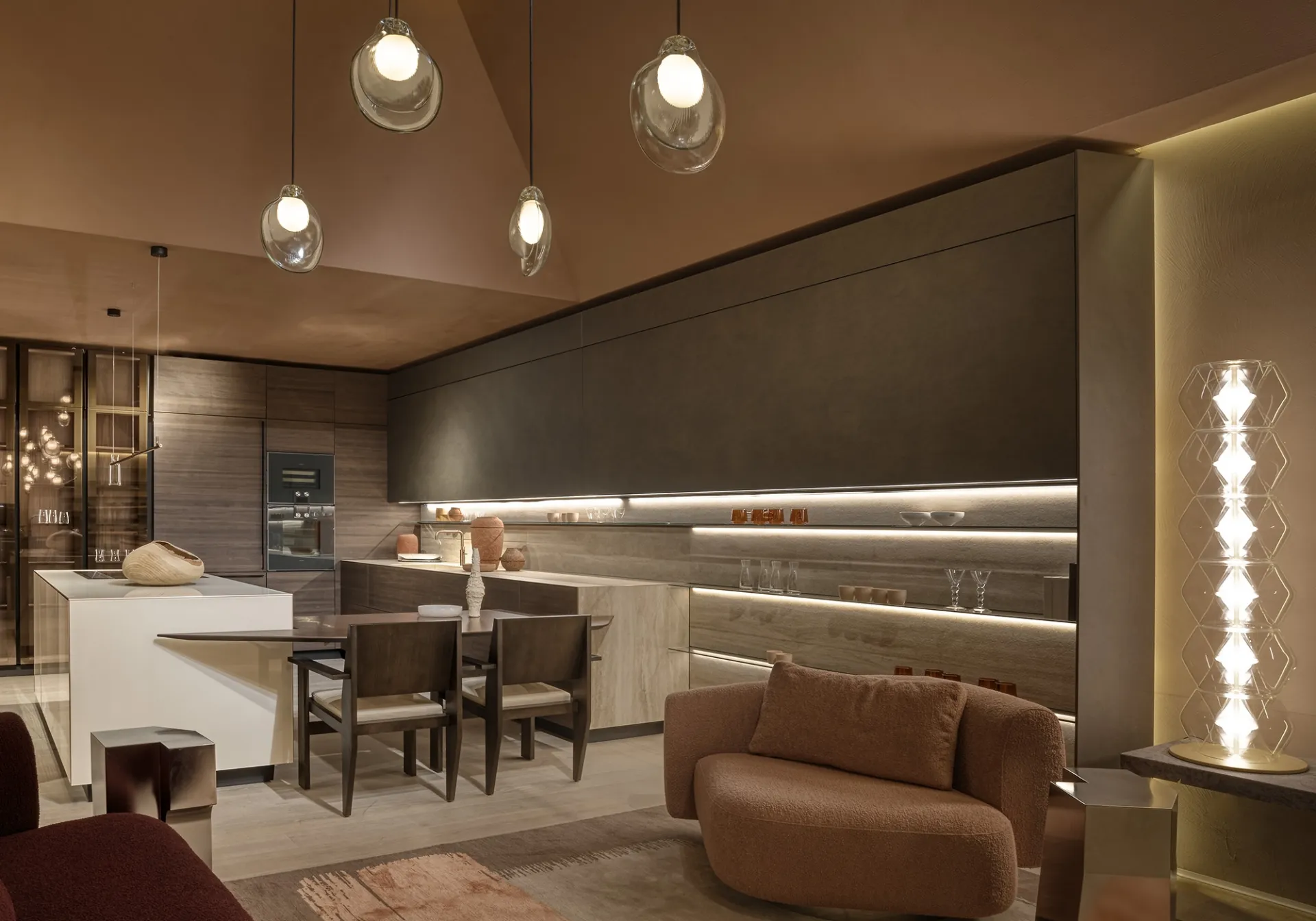 Cucine con penisola Valcucine: entra e scopri un mondo di stile e design! La cucina Artematica Soft Outline con Vela ti sta aspettando.