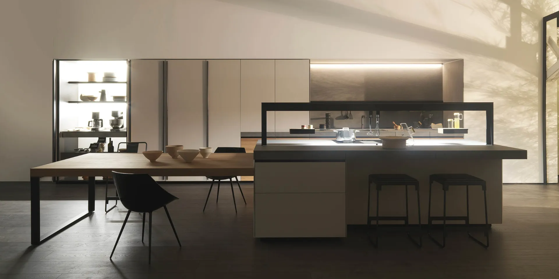 Cerchi una cucina Valcucine? Il modello Genius Loci Olmo Tattile in legno ti attende nel nostro negozio di Cucine Design con isola.