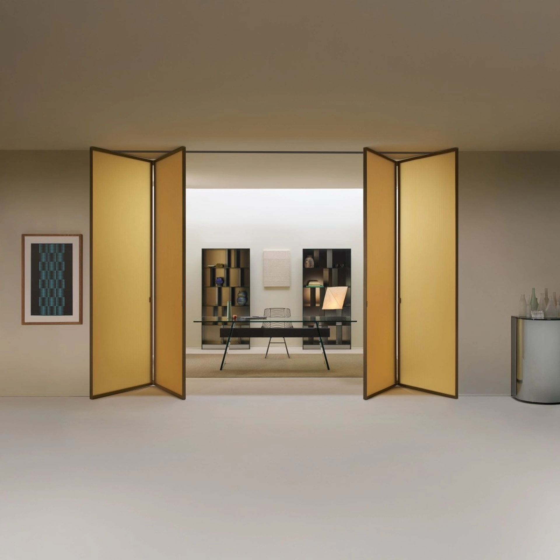 Con la scelta praticamente infinita di modelli a libro, definiti da bellissimi dettagli, la progettazione si esprime con la tua creatività arredativa. Le più esclusive proposte della firma sono testate, perché affrontano stress test e controlli precisi: in negozio potrai toccare con mano i migliori modelli. Grande cura artigianale e avanguardia tecnica contraddistinguono tutte le Porte interne a libro moderne firmate dal marchio Glas Italia. La Porta per interni Sherazade Folding di Glas Italia fa per te se vuoi risolvere le tue problematiche abitative e mantenere la privacy tra le stanze di casa con un certo stile. Sono funzionali e curate le soluzioni arredative del conosciuto marchio, tra cui troverai anche quelle moderne con telaio in alluminio ideali per stanze moderne.
