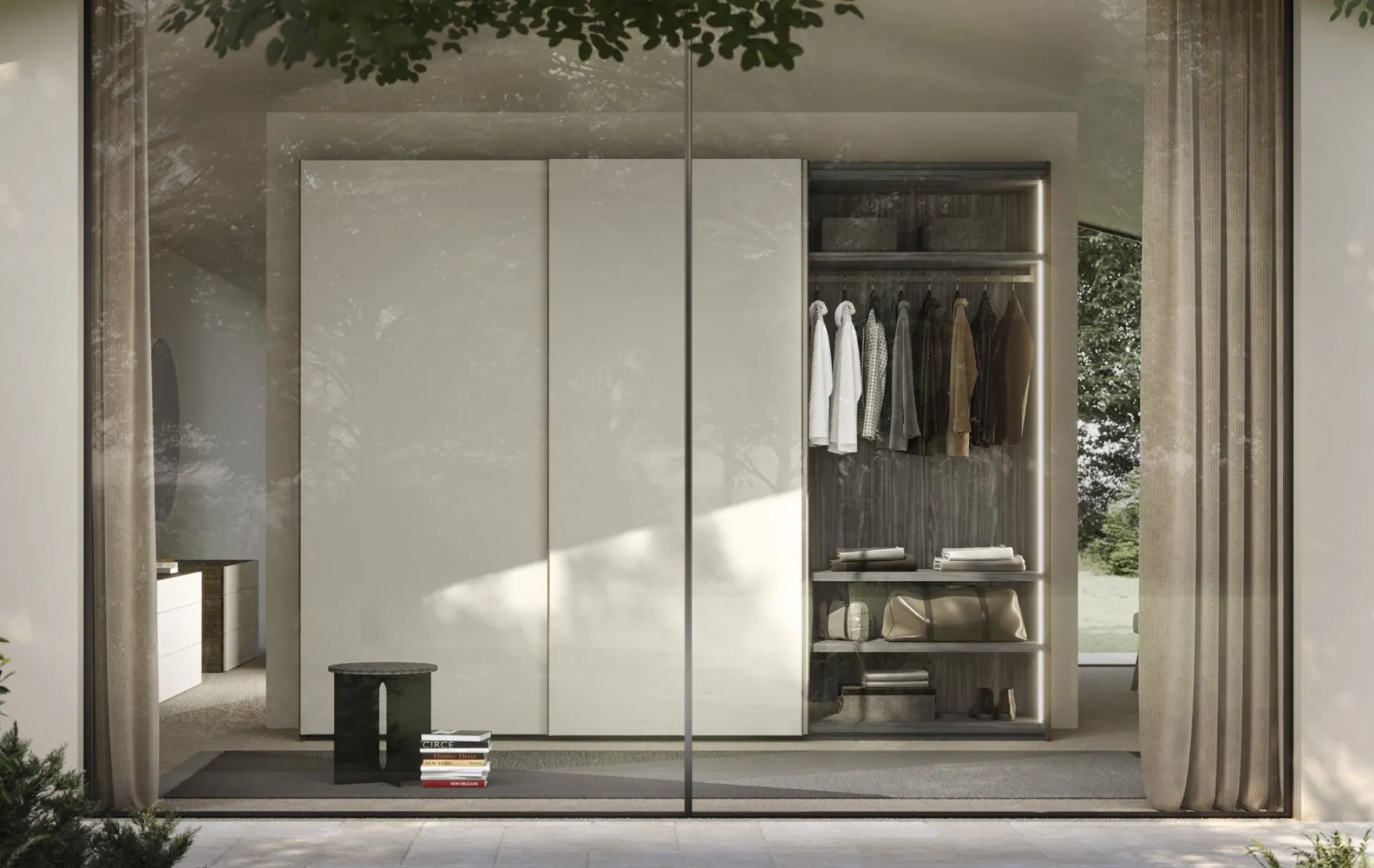 Se desideri armadi a muro con ante scorrevoli, clicca e scopri l'armadio Profilo di Fimar in laccato opaco.