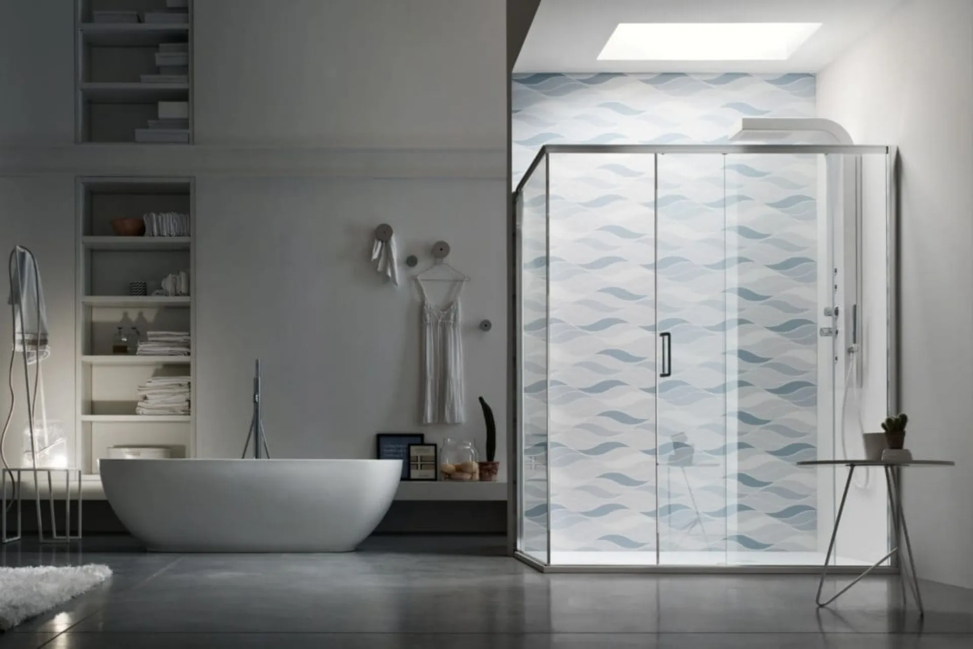Ampia gamma di linee e tonalità per le composizioni di Arredo Bagno moderno con box doccia di Arcom, soluzioni sempre destinate alla massima personalizzazione.