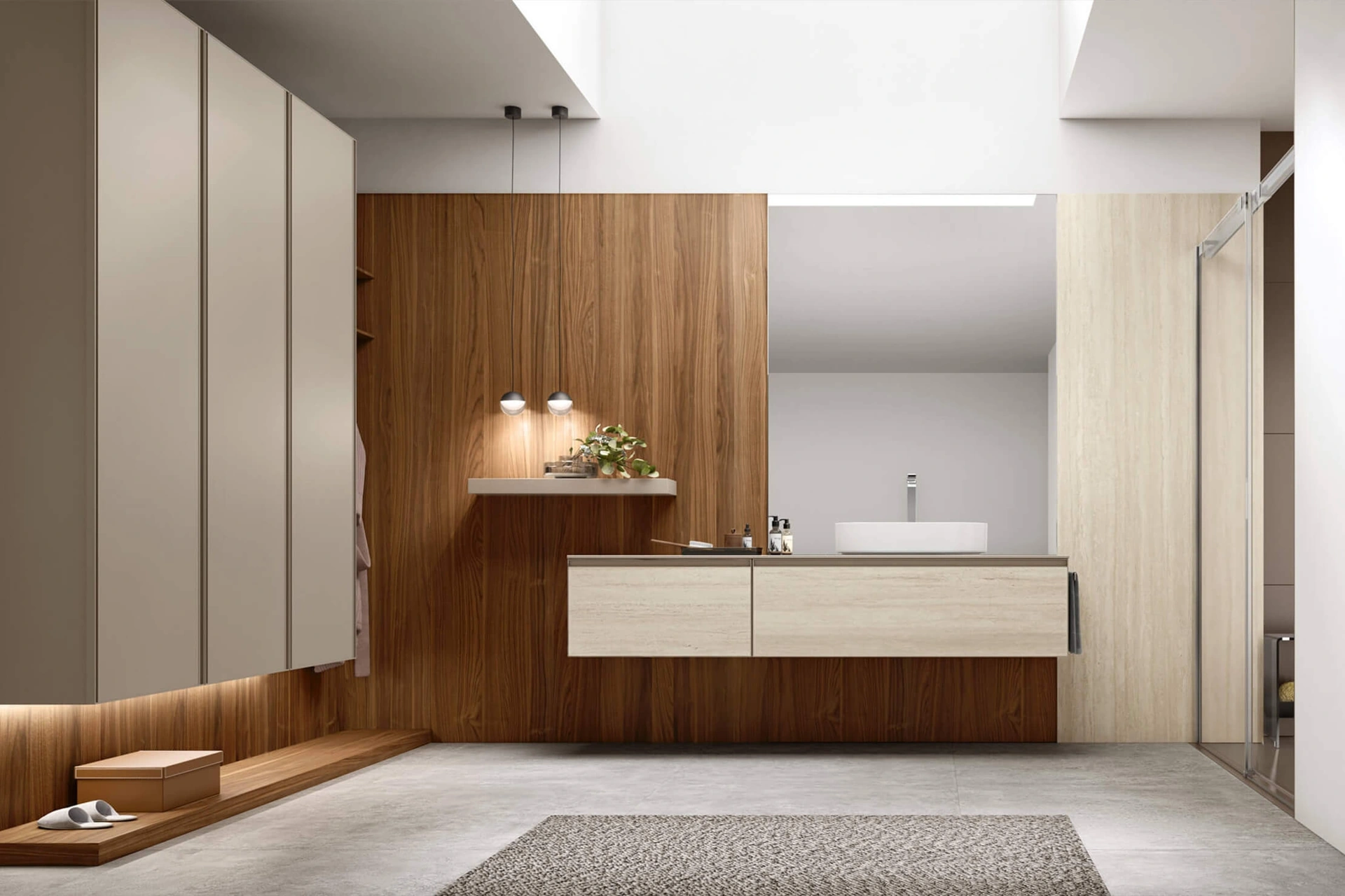 mobili bagno sospesi in gres dell'azienda Arcom: clicca e scopri l'arredo bagno design Shape 18 per il bagno di casa.