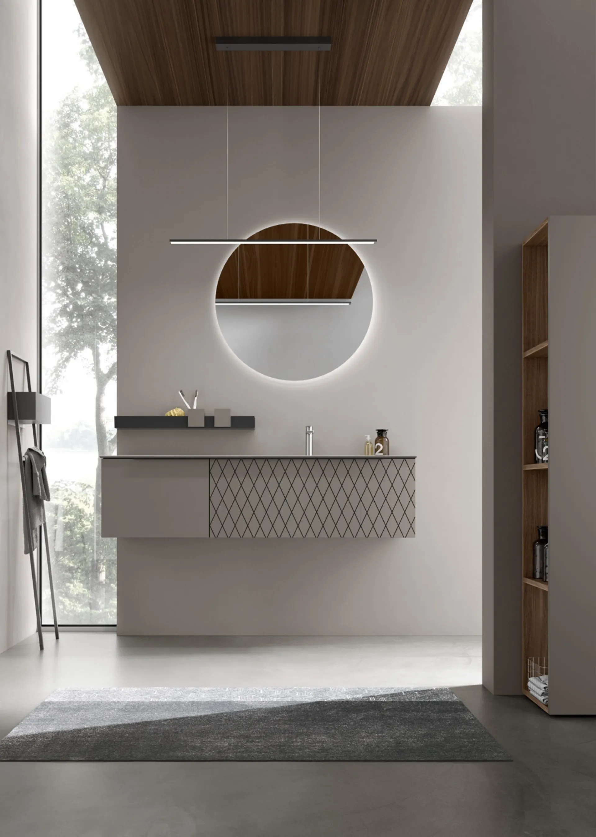 Mobile da Bagno Pollock Trame 103 di Arcom: clicca e scopri di più su mobili bagno sospesi in laccato opaco e accessori dell'azienda.