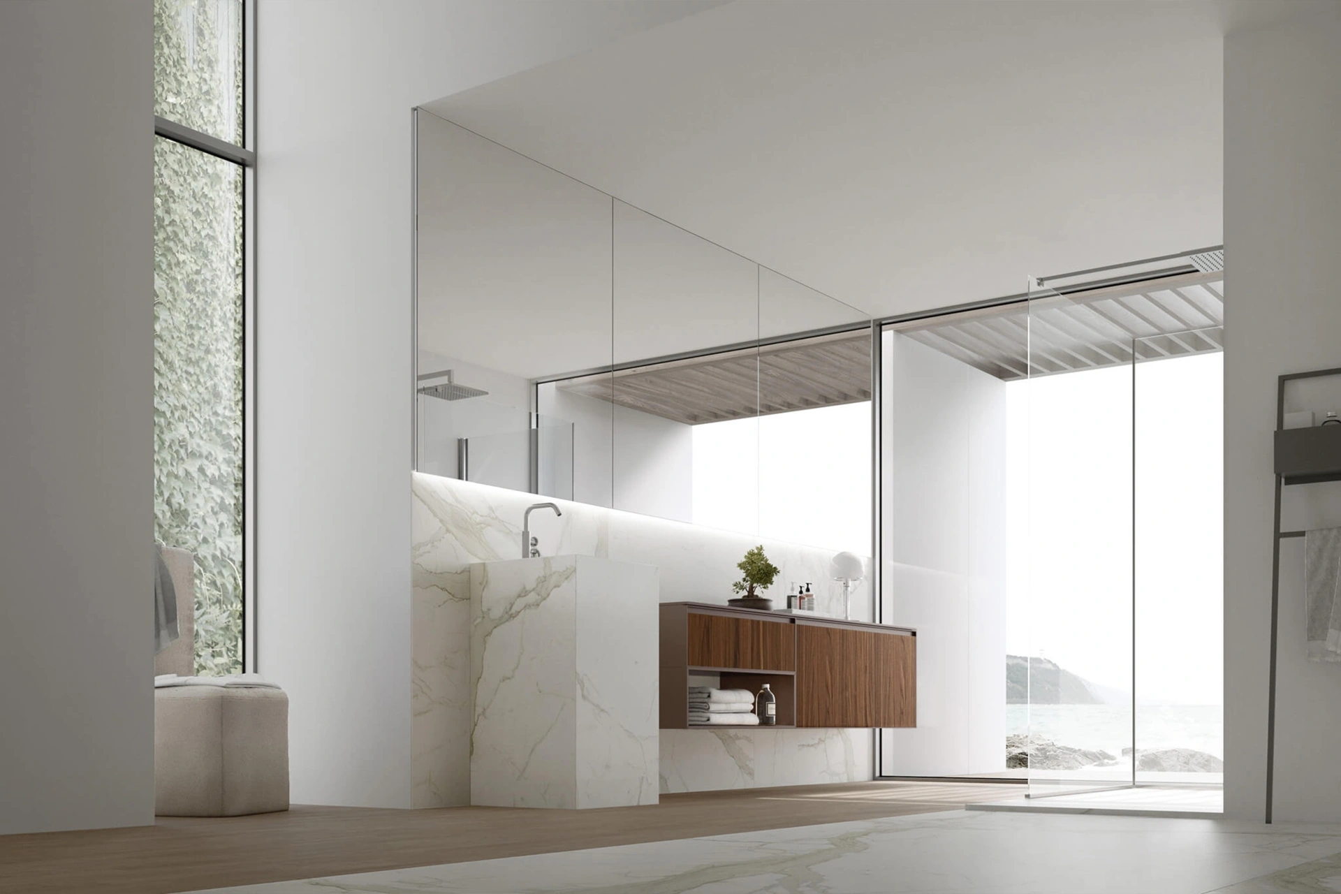 mobili bagno sospesi in legno dell'azienda Arcom: clicca e scopri l'arredo bagno moderno Shape 25 per il tuo bagno.