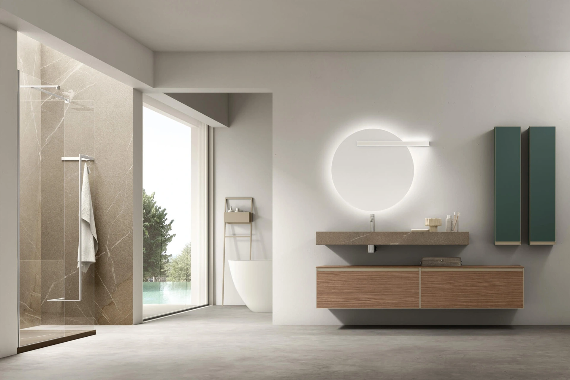 mobili bagno sospesi Shape 37 di Arcom: scopri l'Arredo Bagno in melaminico moderno e arreda il bagno di casa.