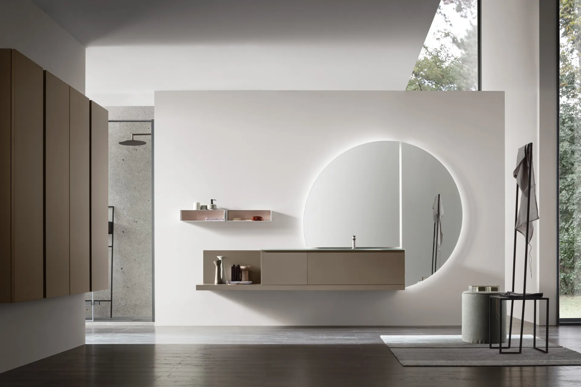Arcom progetta soluzioni per l’Arredo Bagno moderno con mobili bagno sospesi che uniscono design unico e grande ergonomia, come questo locale richiede.