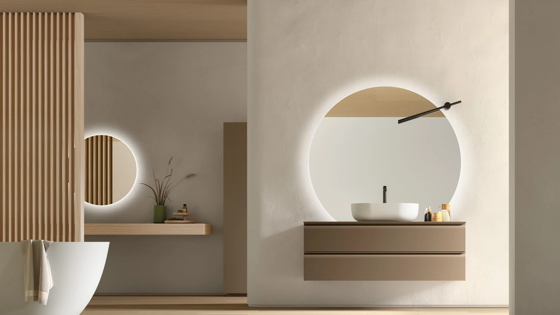 Mobile da Bagno sospeso Virgola 01 di Arcom: clicca e scopri di più su mobili bagno sospesi in laccato opaco e elementi accessori della marca.