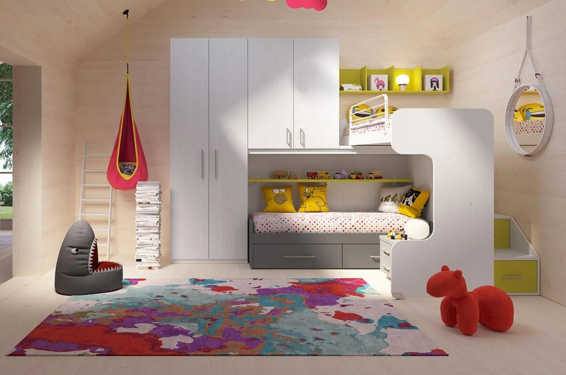 Camerette a soppalco per bambine: scopri il modello in melaminico Cameretta Luca e Davide di Imamobili per stanzette moderne.