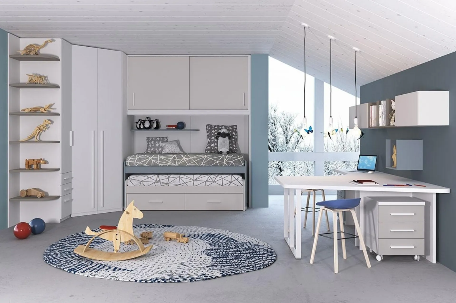 I nostri bambini trascorrono gran parte della giornata nelle loro camere da letto: rendile adatte per studiare, giocare e rilassarsi tutti i giorni. Le Camerette dei nostri bambini sono il luogo dove diventeranno grandi giocando e sognando, quindi è imprescindibile che lo spazio sia funzionale. Presentiamo in negozio diverse Camerette salvaspazio moderne per bambini del marchio, ideali per seguirli durante il loro sviluppo. Con la Cameretta salvaspazio Tommaso e Mattia di Imamobili in melaminico ti assicurerai un perfetto mix di ergonomia e sicurezza, ideale per la stanza dei tuoi bambini. Nel nostro punto vendita ci occupiamo di seguirti dalla scelta dei mobili per la camera alla progettazione del luogo in cui i tuoi bambini cresceranno, giocando e sognando.