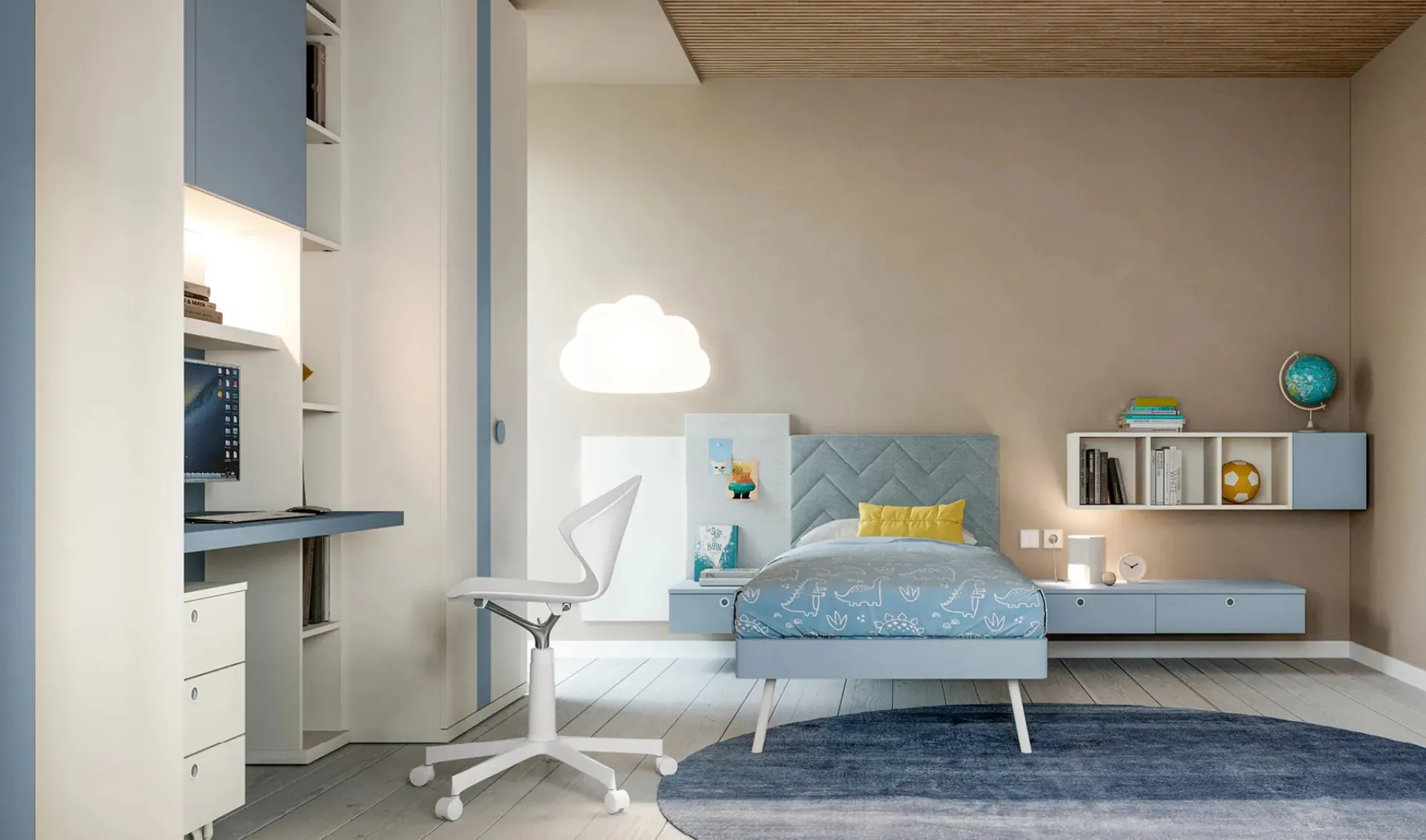 Se cerchi spunti progettuali per progettare perfettamente la stanza dei tuoi bambini, ti proponiamo la Cameretta Layout 06A di Doimo Cityline con finitura in laccato opaco.