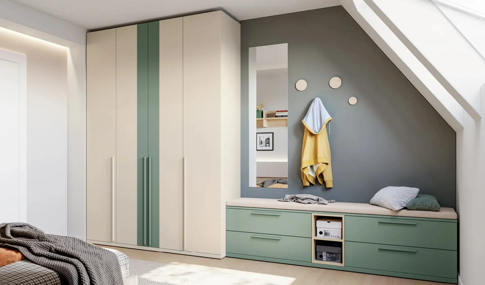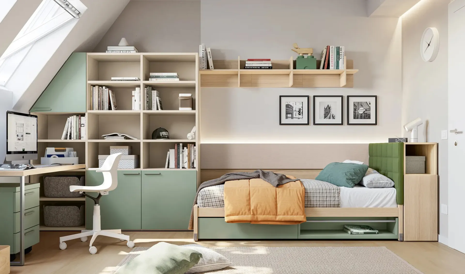 Se cerchi spunti creativi per progettare al meglio la stanza dei tuoi bambini, ti presentiamo la Cameretta Layout 12A di Doimo Cityline con finitura in melaminico.