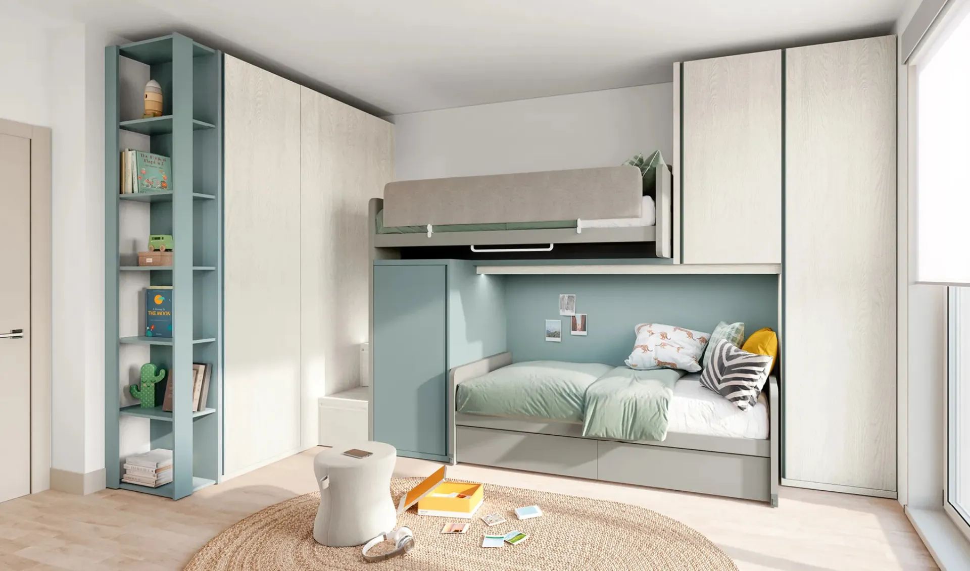 Gli elementi accessori disponibili per le Camerette a soppalco di Doimo Cityline sono sempre adattabili, per evitare qualsiasi problema di spazio e funzionalità.
