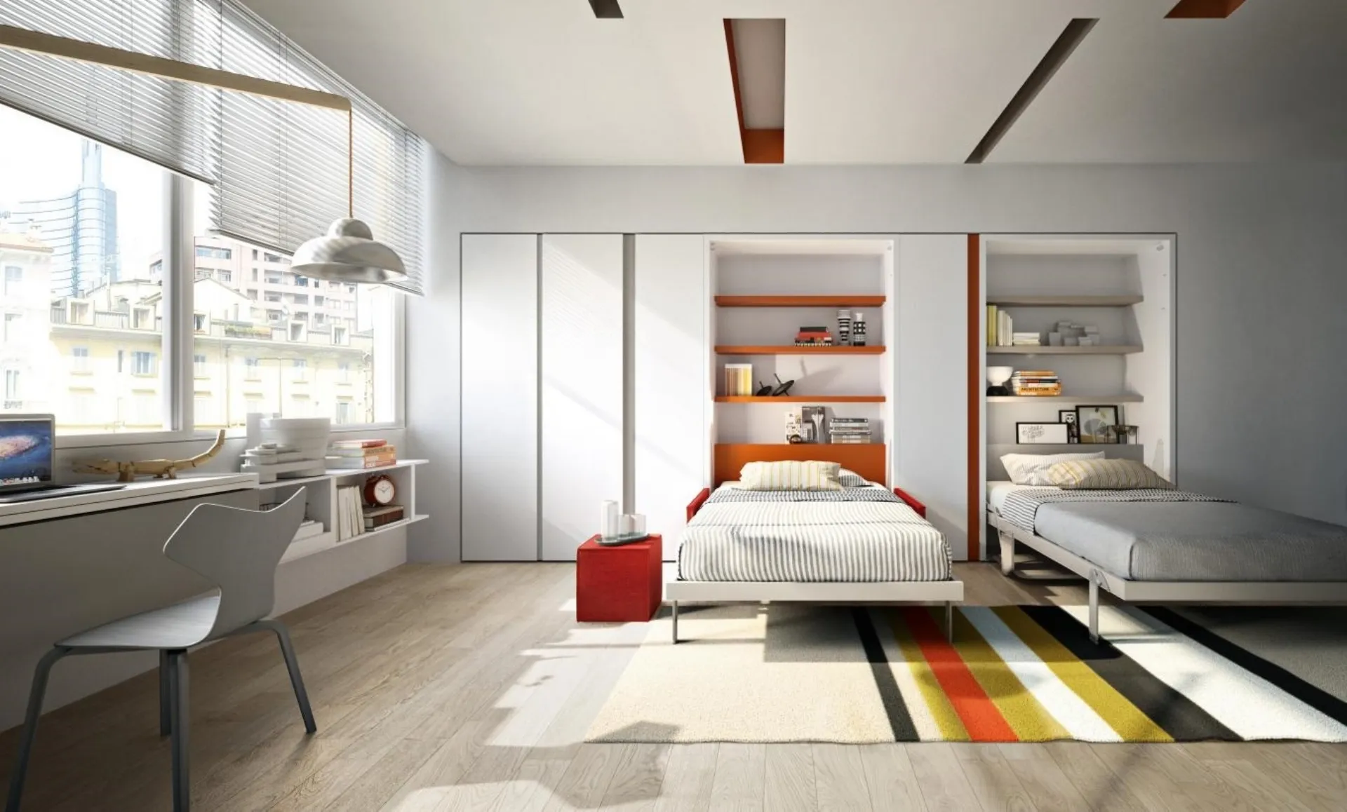 Con questa cameretta Young 09 Clei, tra le soluzioni salvaspazio, potrai arredare stanze moderne per ragazzi.