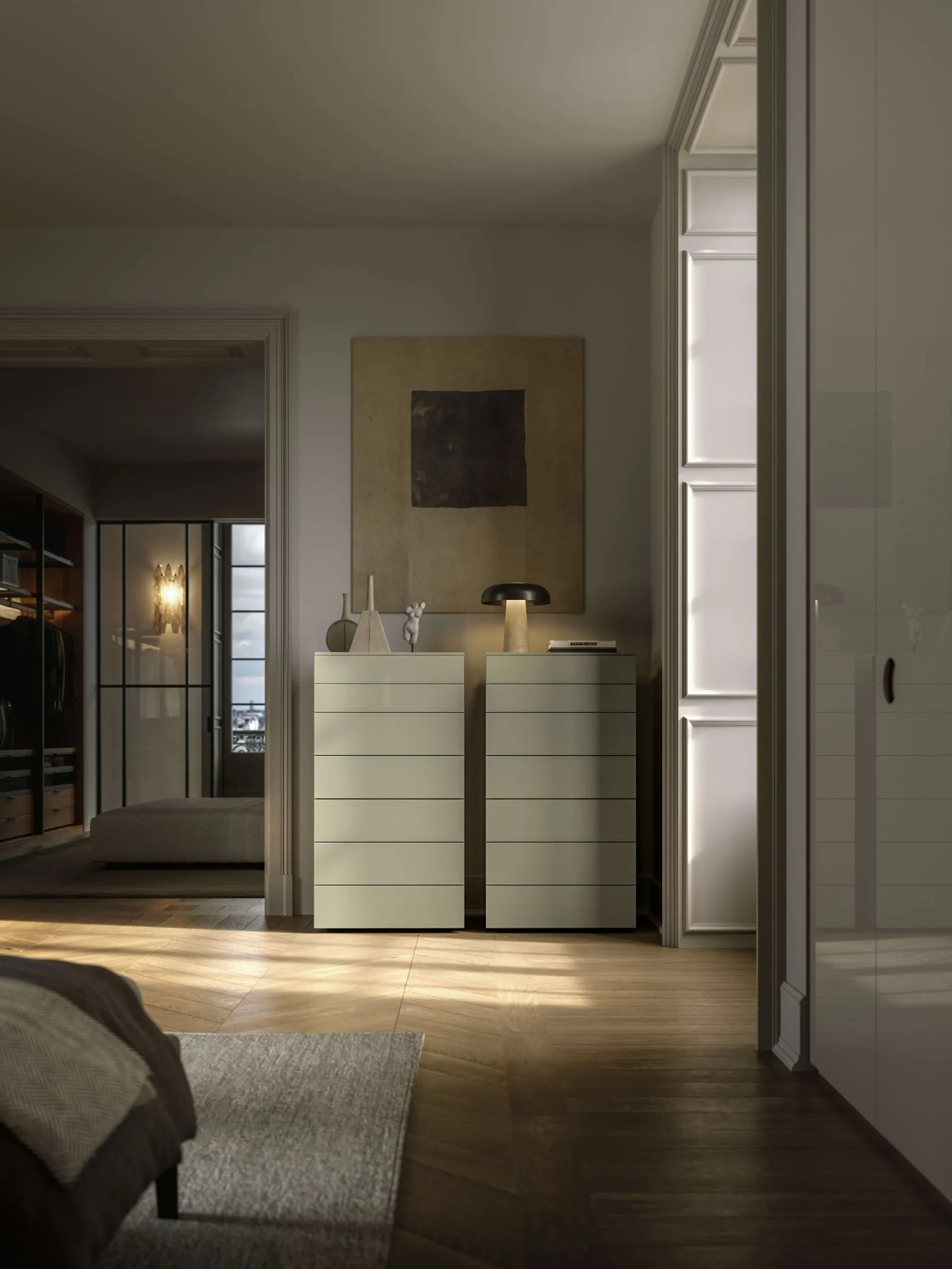 Vuoi arredare la camera da letto con Comodini e mobili con cassetti di Lema? Ti presentiamo il modello Florens gruppo notte in laccato opaco per spazi moderni.