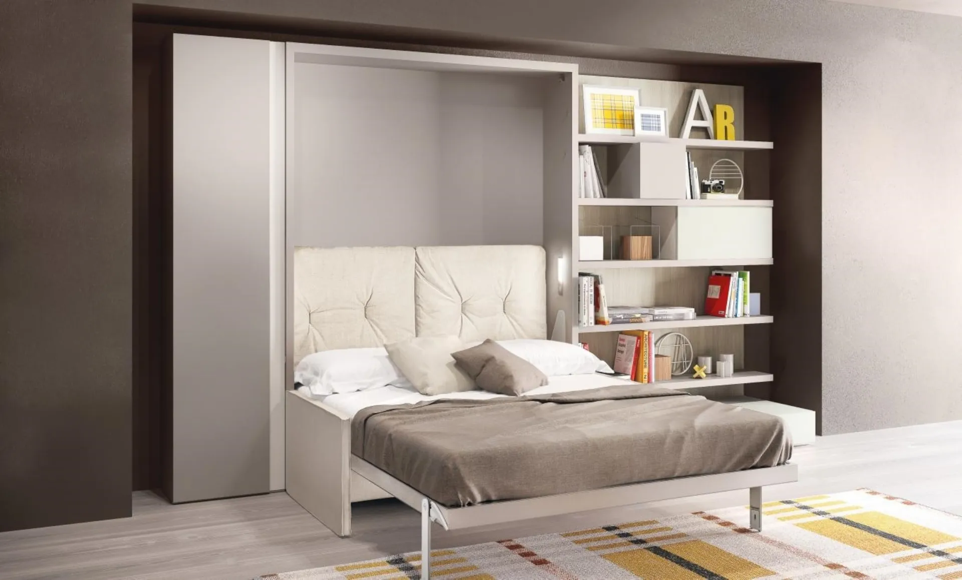 Con i Letti a scomparsa salvaspazio della firma Clei, tra cui questo pratico modello, farete della camera da letto uno spazio arredato con stile. La camera da letto è il luogo di casa che più mostra la personalità di chi la usa, locale in assoluto dedicato al riposo, alla distensione e alla propria riservatezza. Farci visita significa toccare con mano le più belle composizioni in laccato opaco del conosciuto marchio, tra cui anche quelle ideali per locali piccoli. Nella camera da letto i Letti a scomparsa sono il centro dell’arredo: con la biancheria e i cuscini, diventano un’isola di relax che ti accolga alla sera. Tra i Letti a scomparsa in laccato opaco presenti sul mercato, il modello visibile in foto ti assicurerà il relax totale tutte le notti e un completo benessere. I modelli salvaspazio su misura di Clei disponibili nel nostro punto vendita personalizzano le doti pratiche della tua camera da letto unendo doti di funzionalità ed ergonomia.