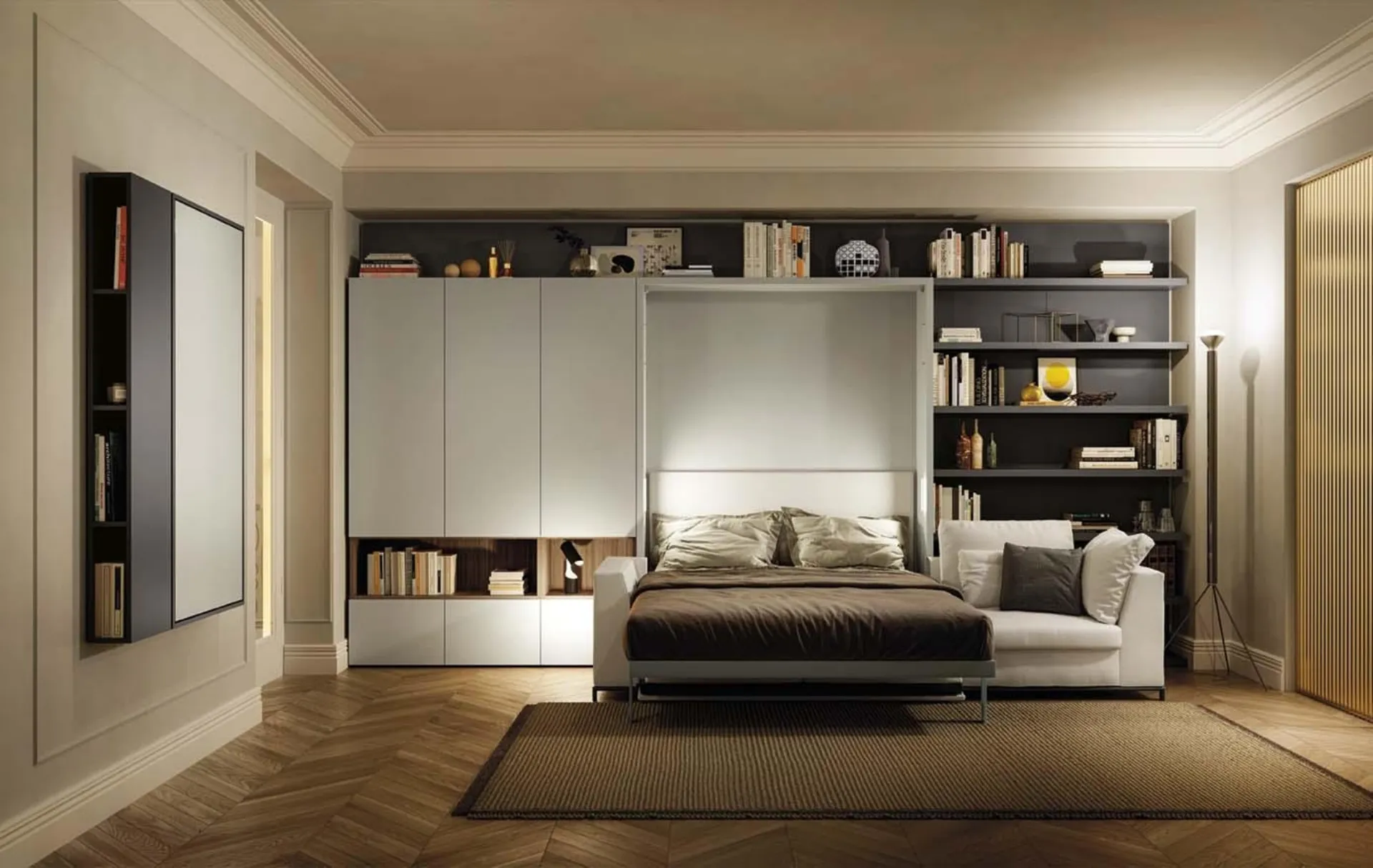 Letto a scomparsa Living 25 di Clei: scopri le più esclusive soluzioni estremamente compatte trasformabili in laccato opaco.