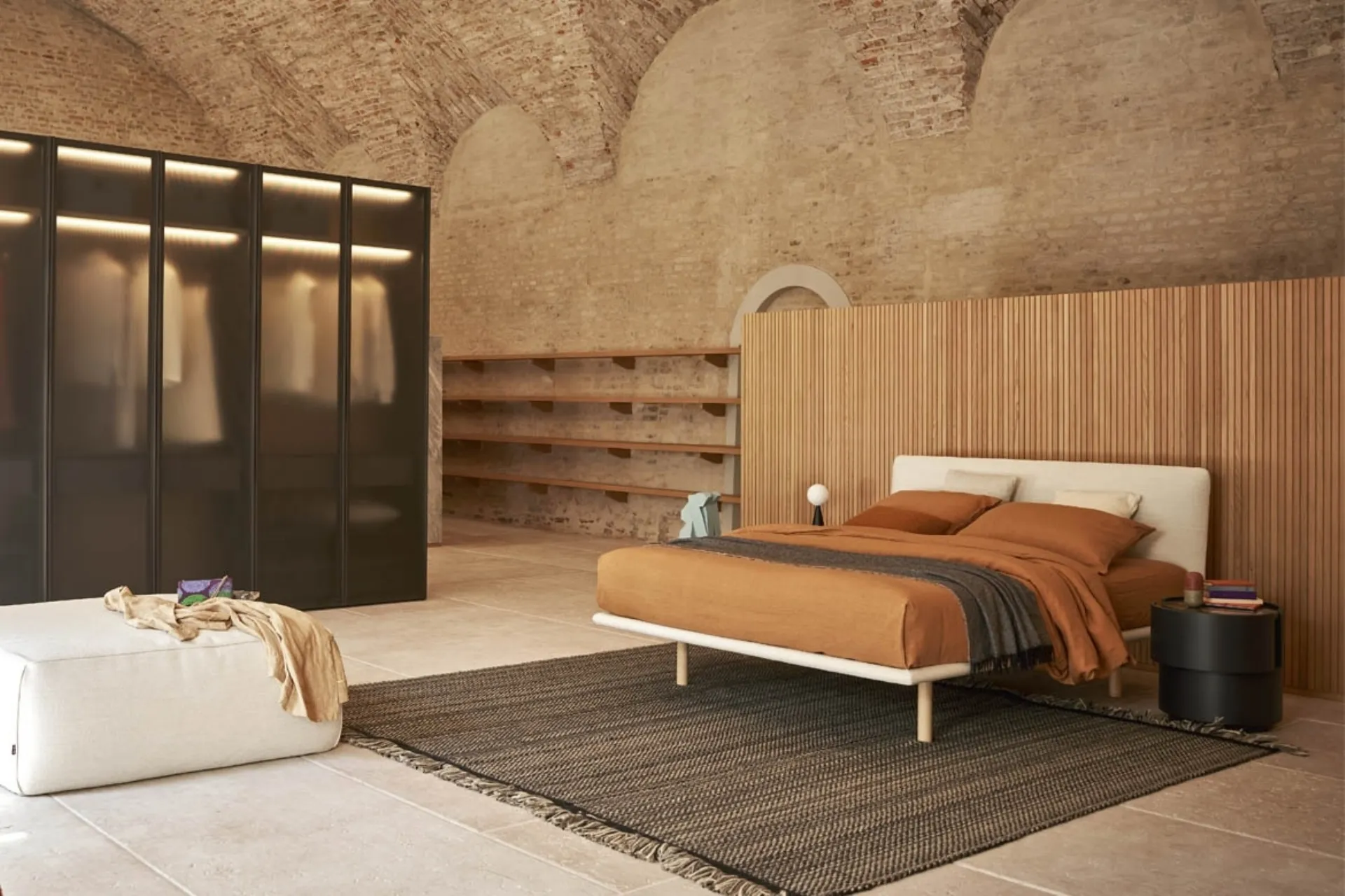 Vuoi attualizzare la camera da letto? Ecco qui il letto in tessuto Filo Up di Pianca per spazi moderni.