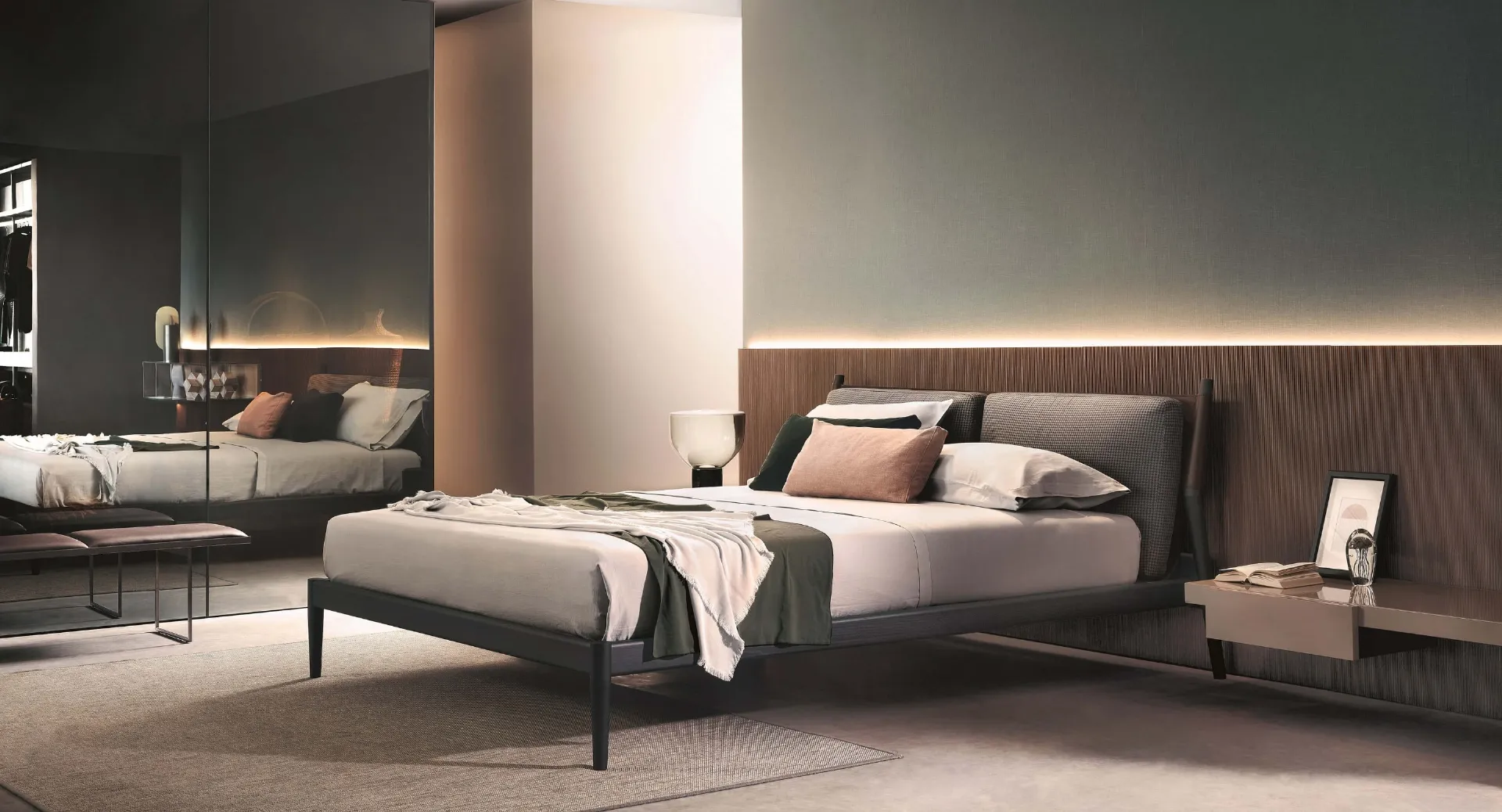 Il letto Maddox in cuoio, tra i modelli con testiera matrimoniali design di Lema, è ideale per garantirti il relax totale.