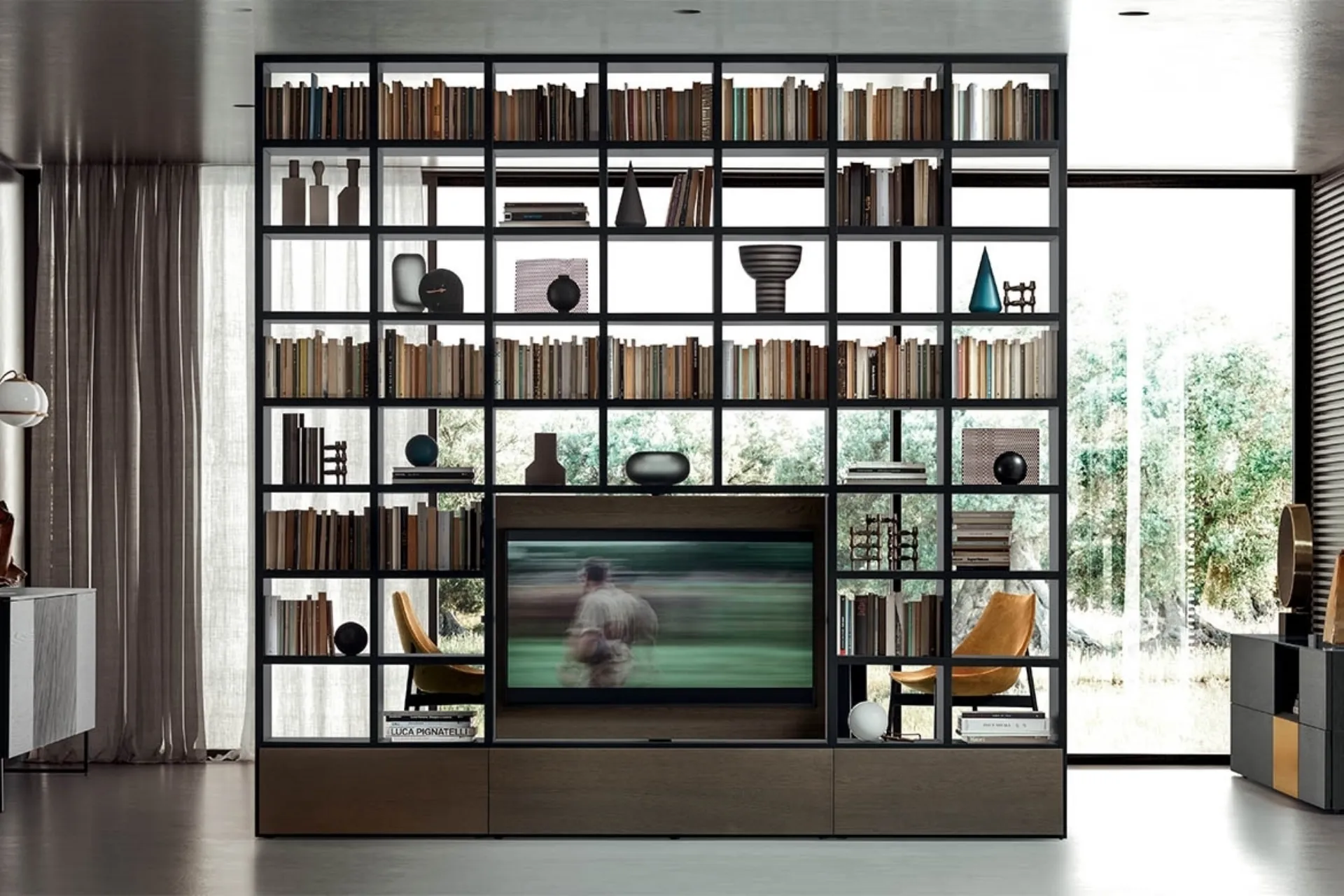 Finiture di pregio e linee decise: scopri la libreria Spazioteca laccato Lavagna di Pianca tra le più originali Librerie moderne divisorie.